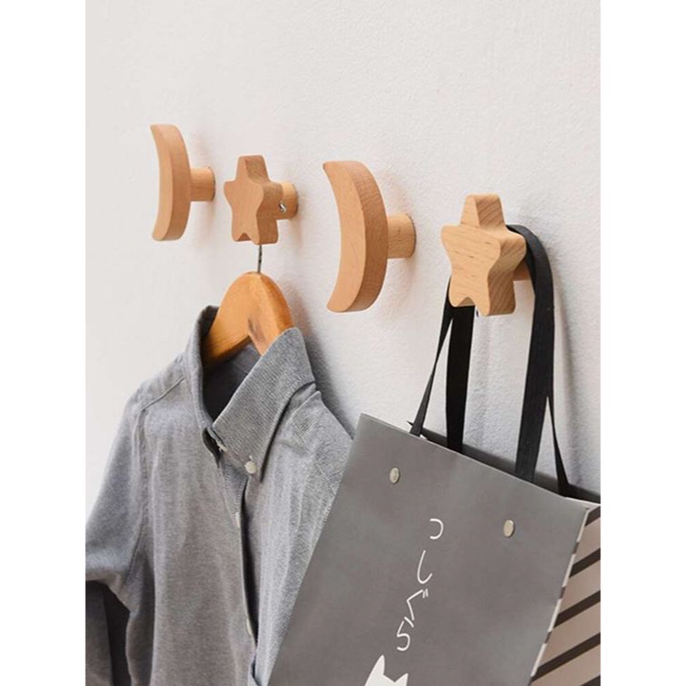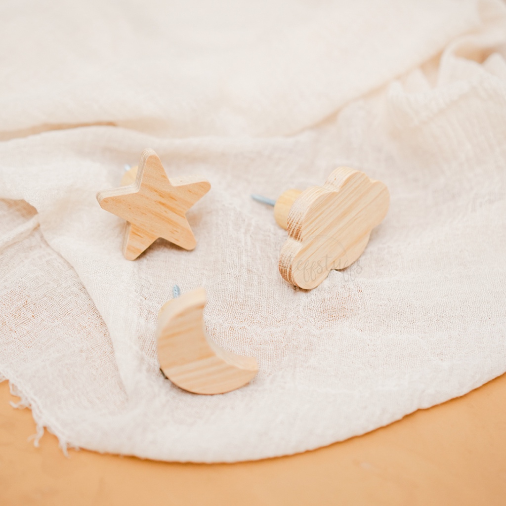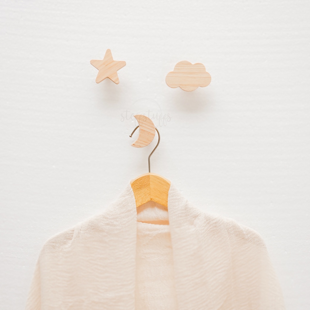 WOODEN HOOK | Gantungan Kamar Anak Kayu Bintang Bulan Awan Star Cloud Moon Shape Room Decor