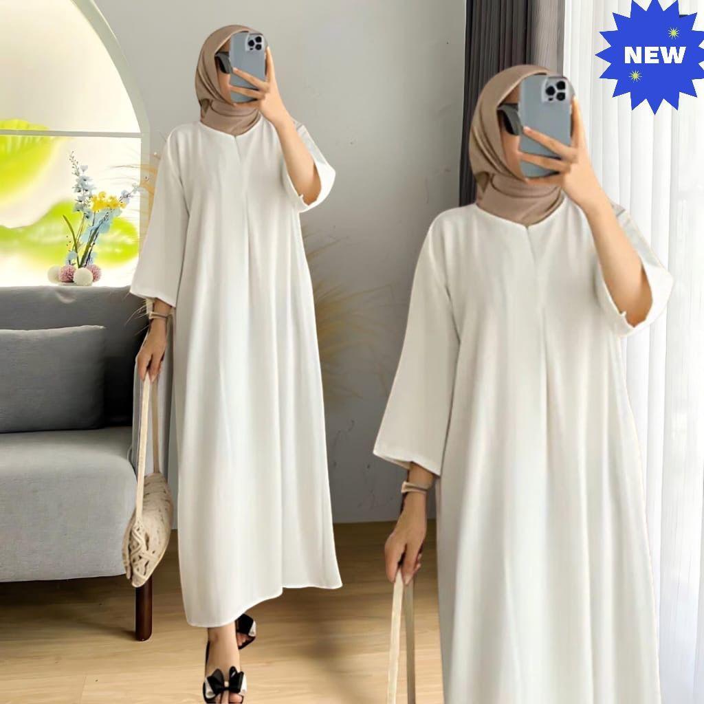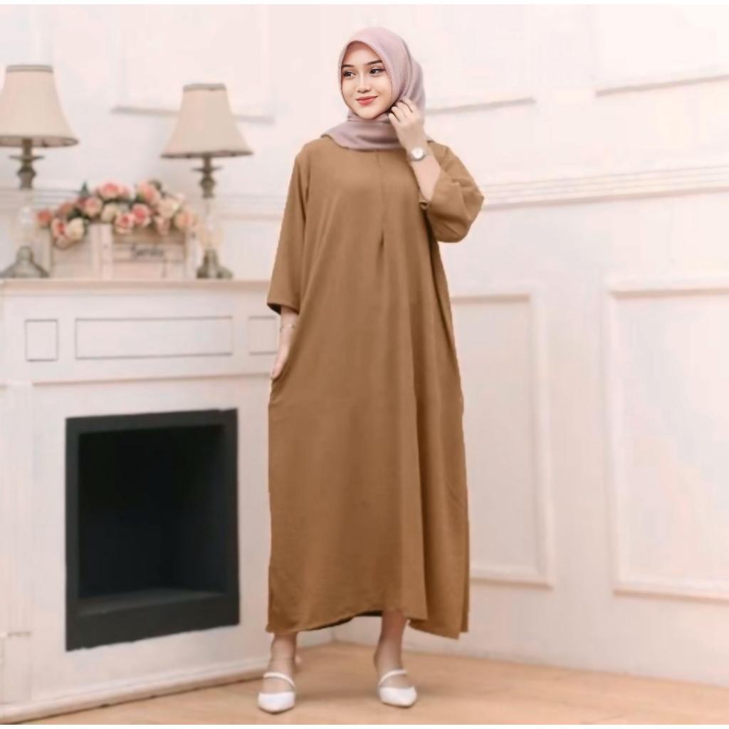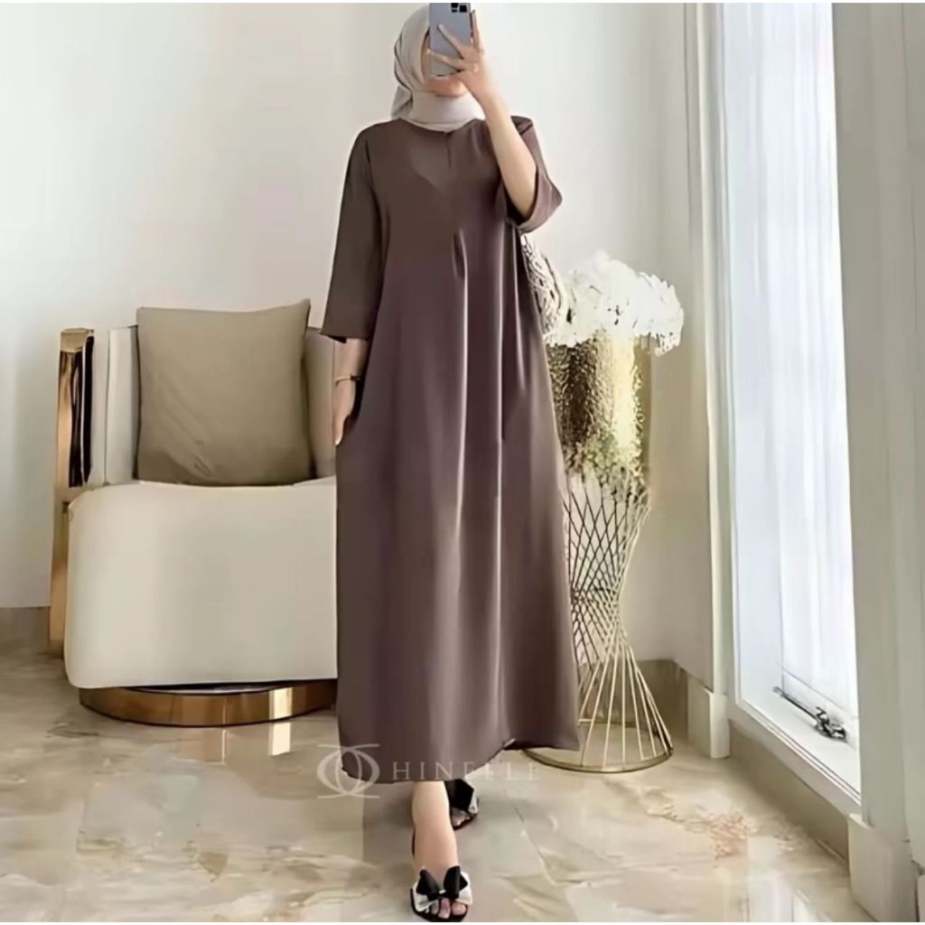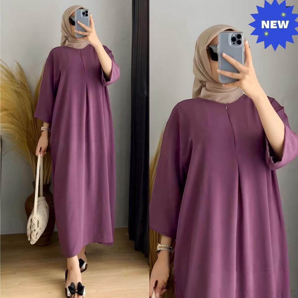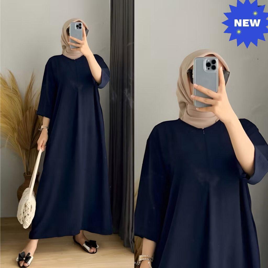 MIDI DRESS ZEA || LENGAN 3/4 BUSUI CRINKLE AIRFLOW