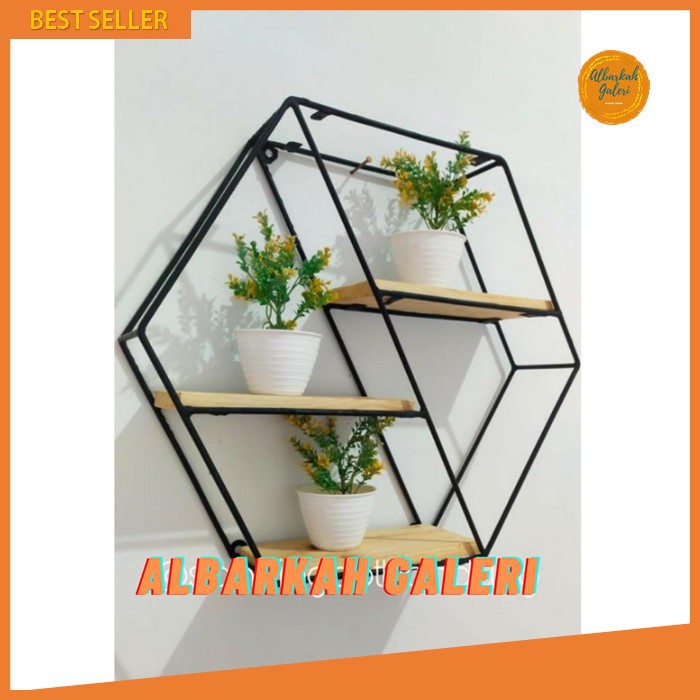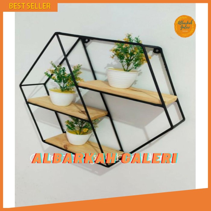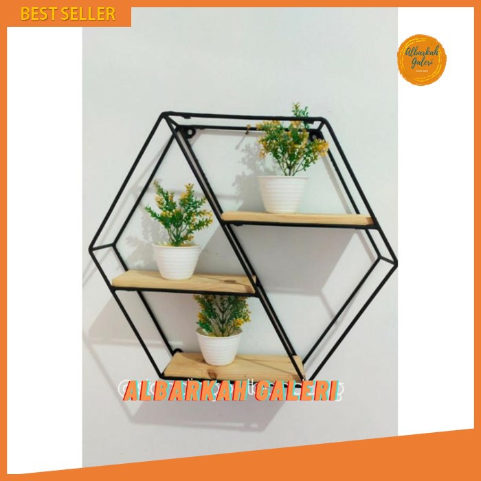 Rak Dinding Besi Dekorasi Dinding Minimalis Vintage Hexagon Jatibelanda