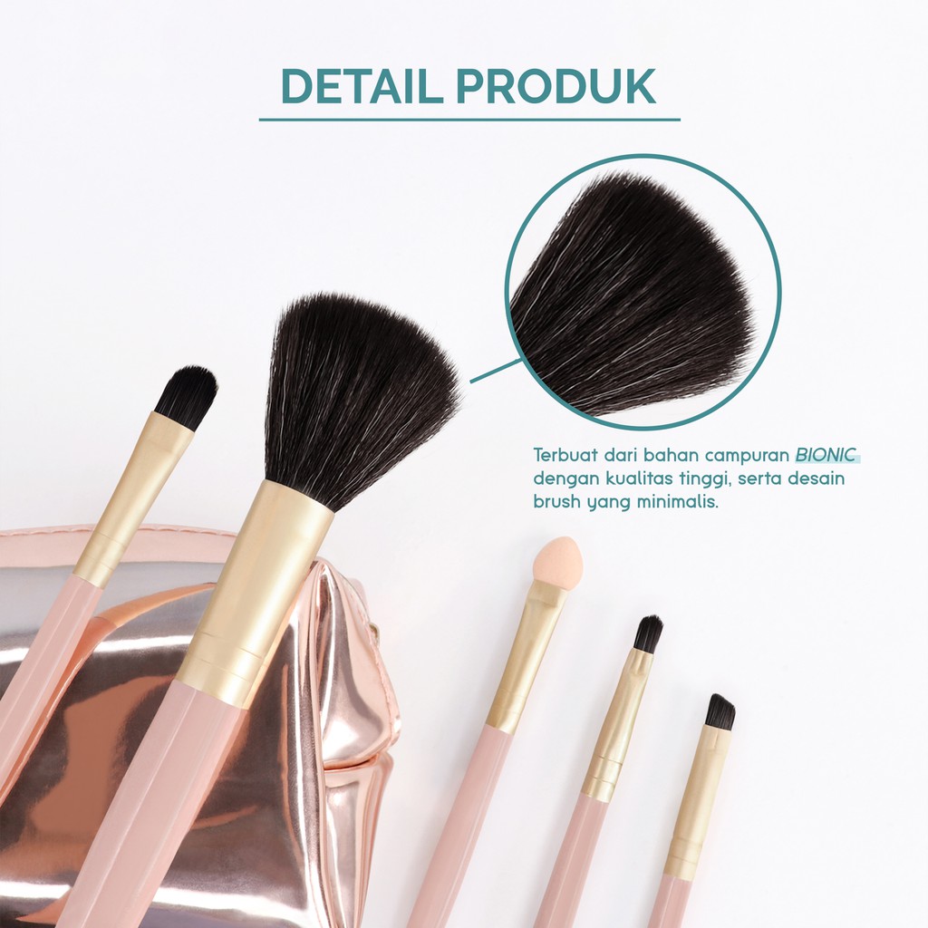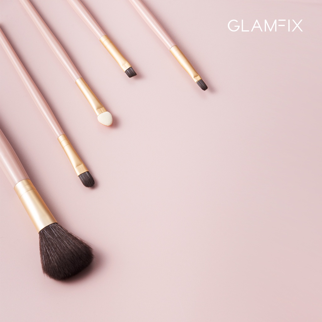 GLAMFIX Excellent Brush Set Rose Blossom Make Up Brush Set Kuas Makeup 5pcs Alat Kecantikan Makeup
