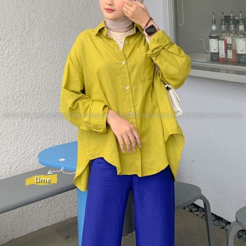 Kemeja Wanita Linen Oversize Olivia Shirt Linen Pocket