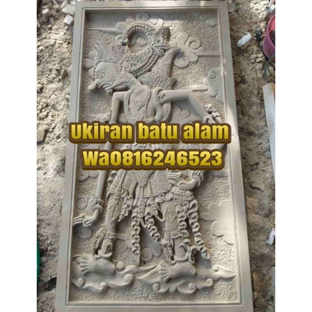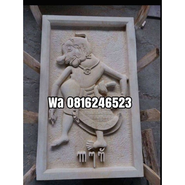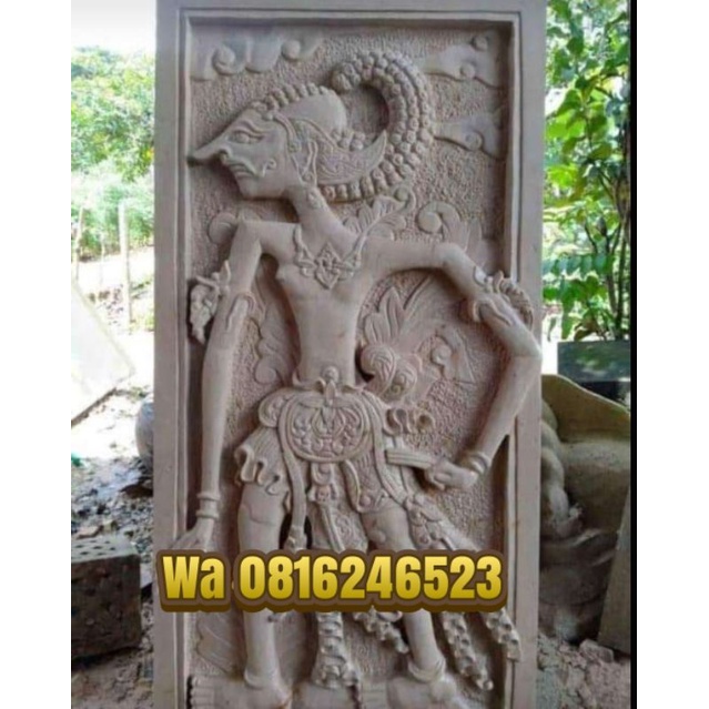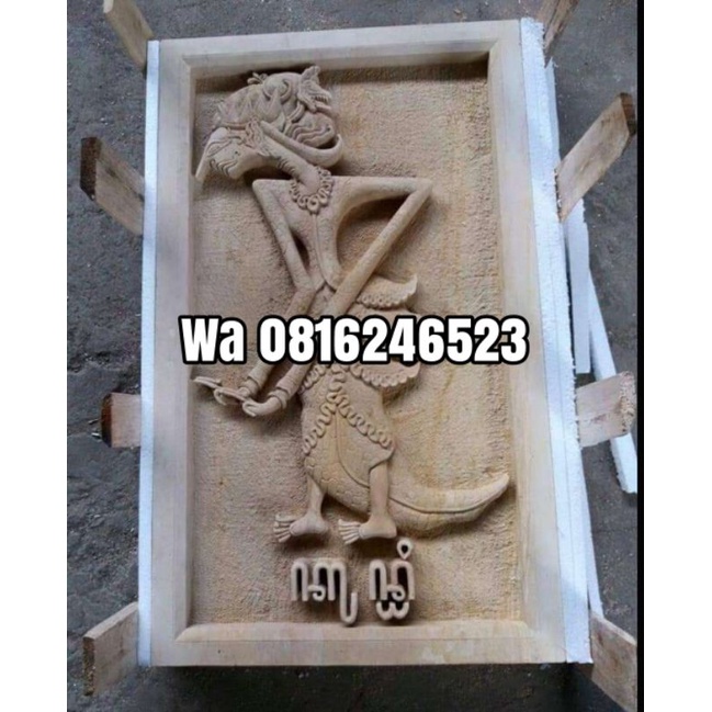 hiasan dinding pewayangan relief batu ukir ornamen paras jogja 60x100
