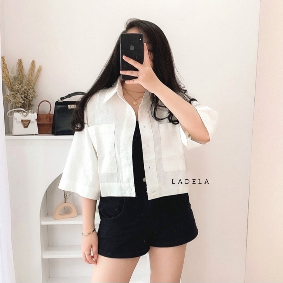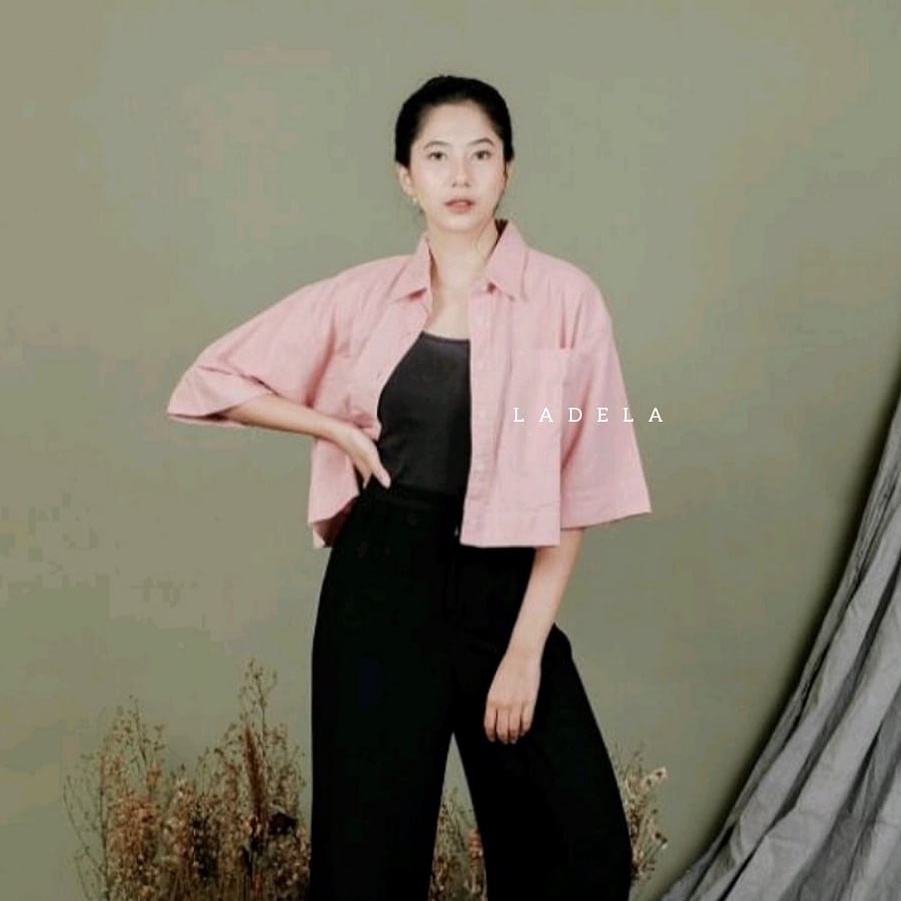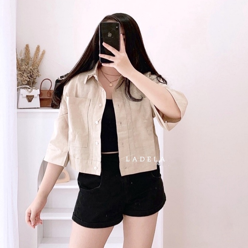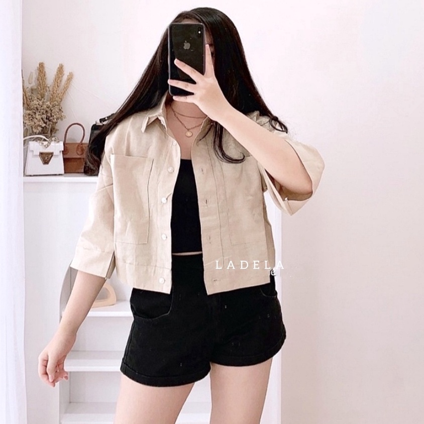 BLOUSE WANITA KEMEJA CROP OVERSIZE OUTER WANITA CROP LINEN PREMIUM