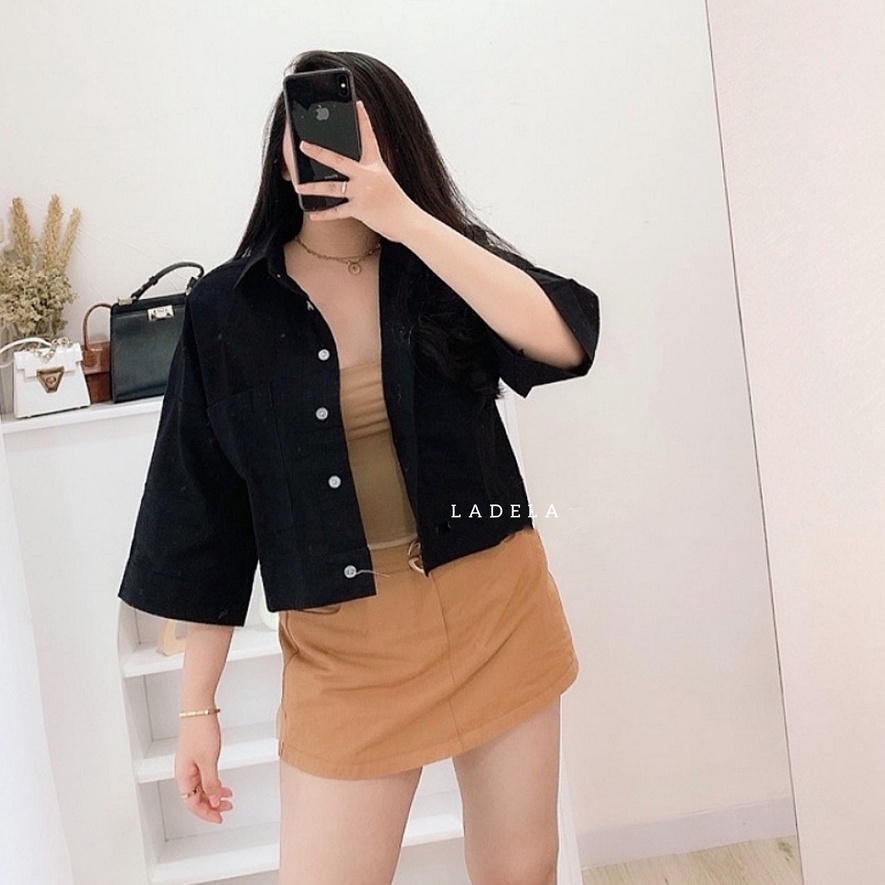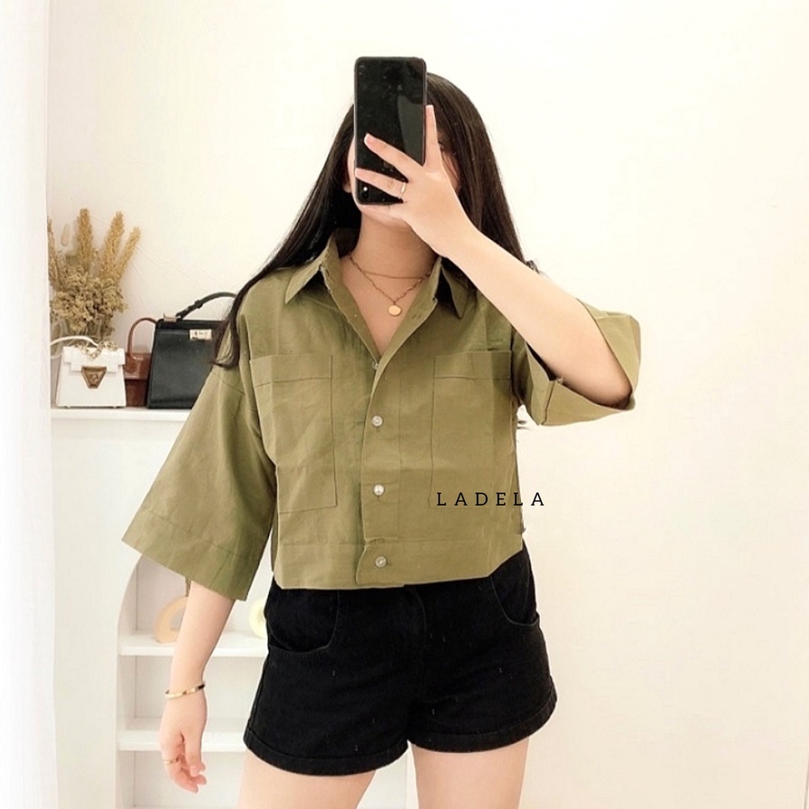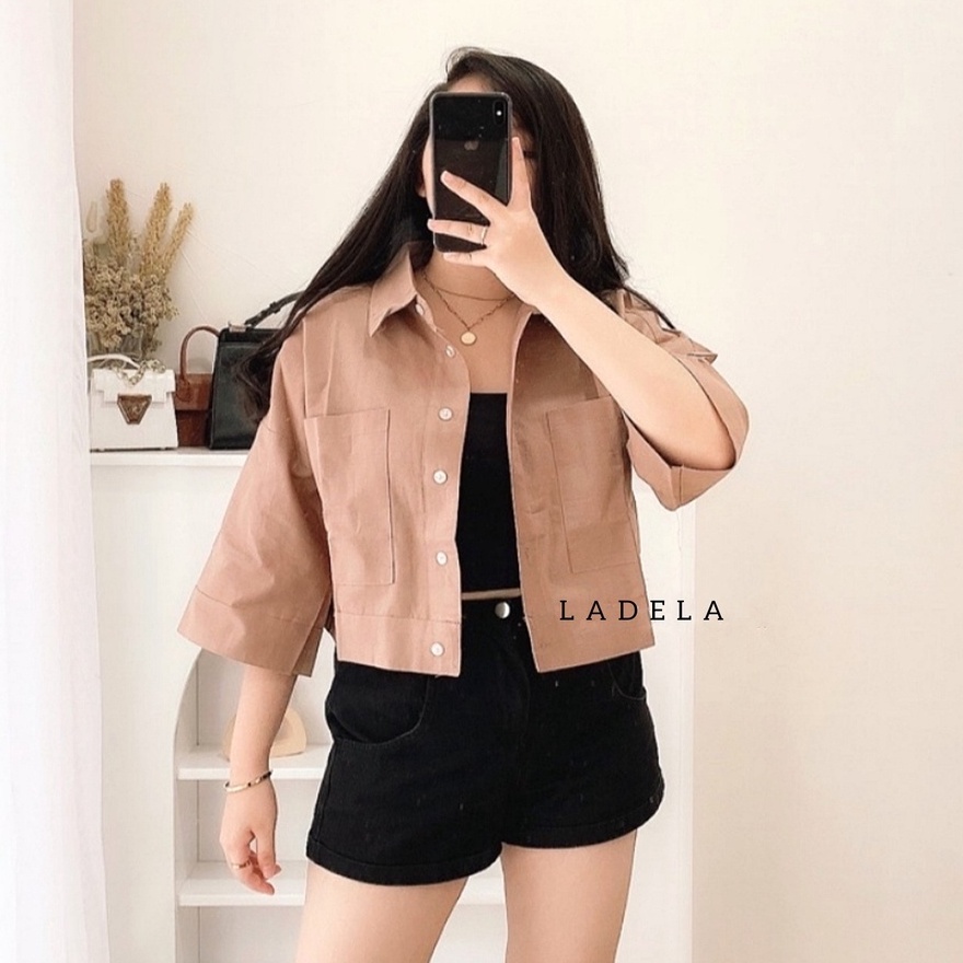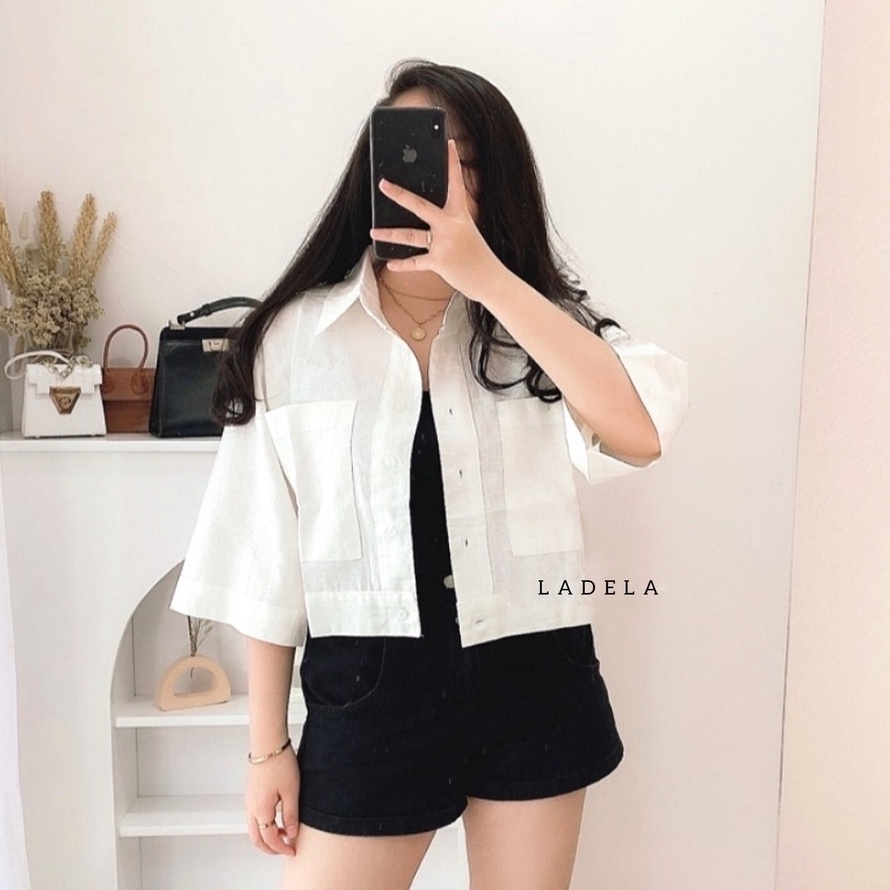 BLOUSE WANITA KEMEJA CROP OVERSIZE OUTER WANITA CROP LINEN PREMIUM