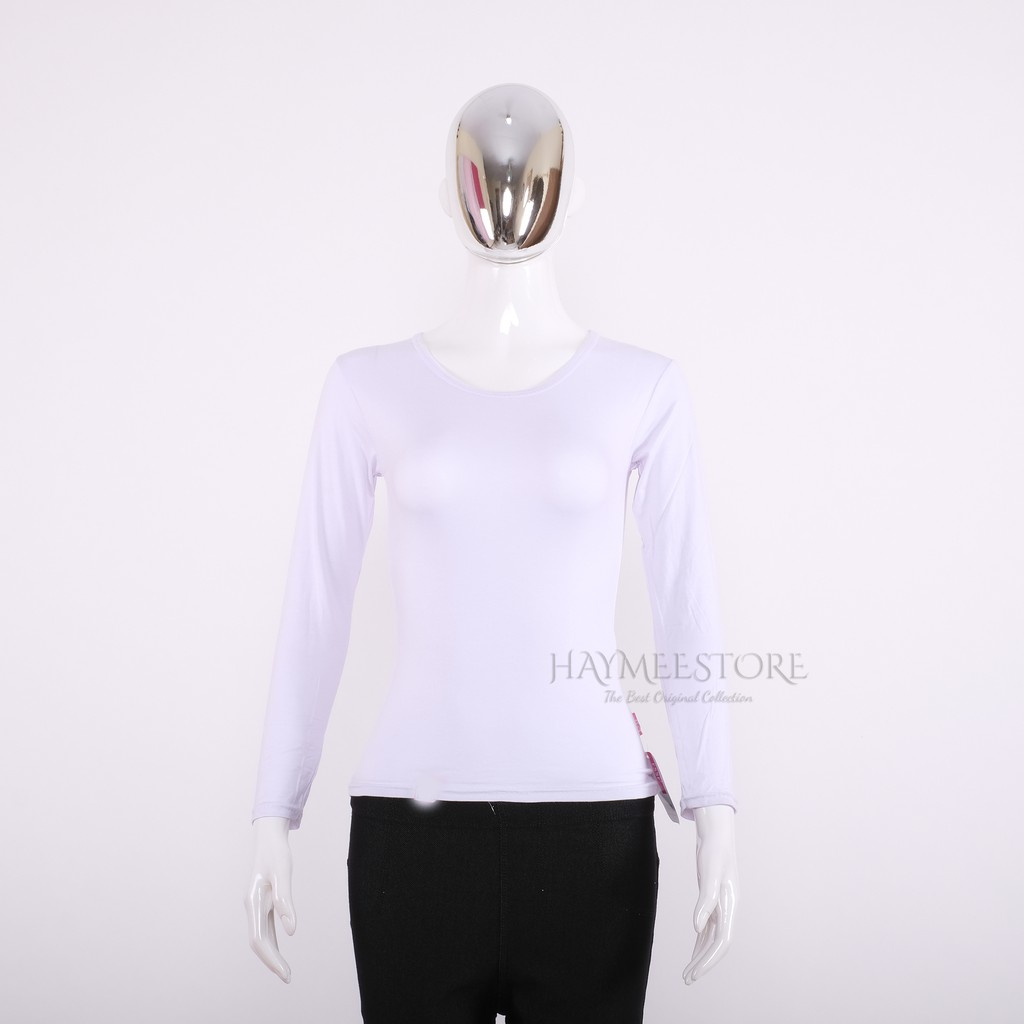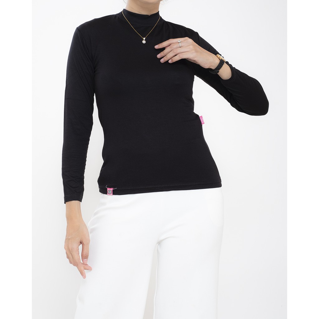 HaymeeIDN - Baju Manset Wanita Lengan Panjang Inner Dalaman Cewek Bahan Kaos Hitam dan Putih