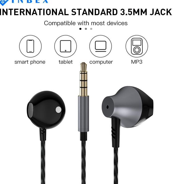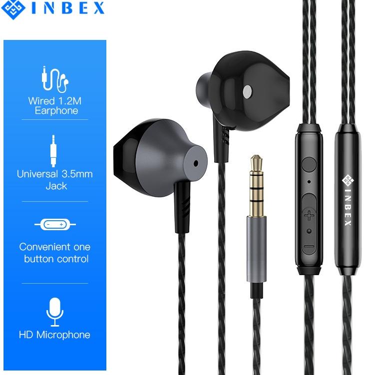INBEX Headset/Headset Stereo/Double Speaker with Mic Universal/Metal 3.5mm Jack/Multi-function butto –LBR.14Jl22ᴱ