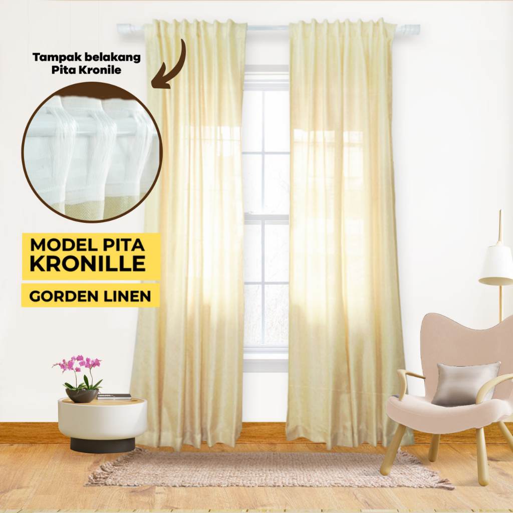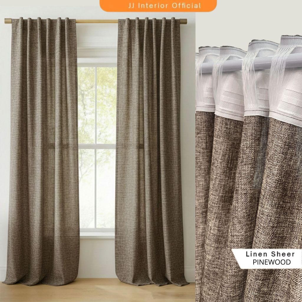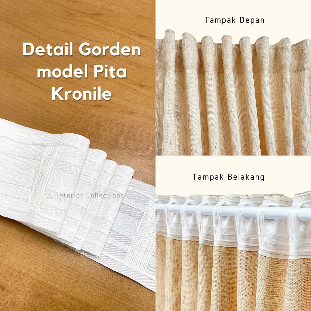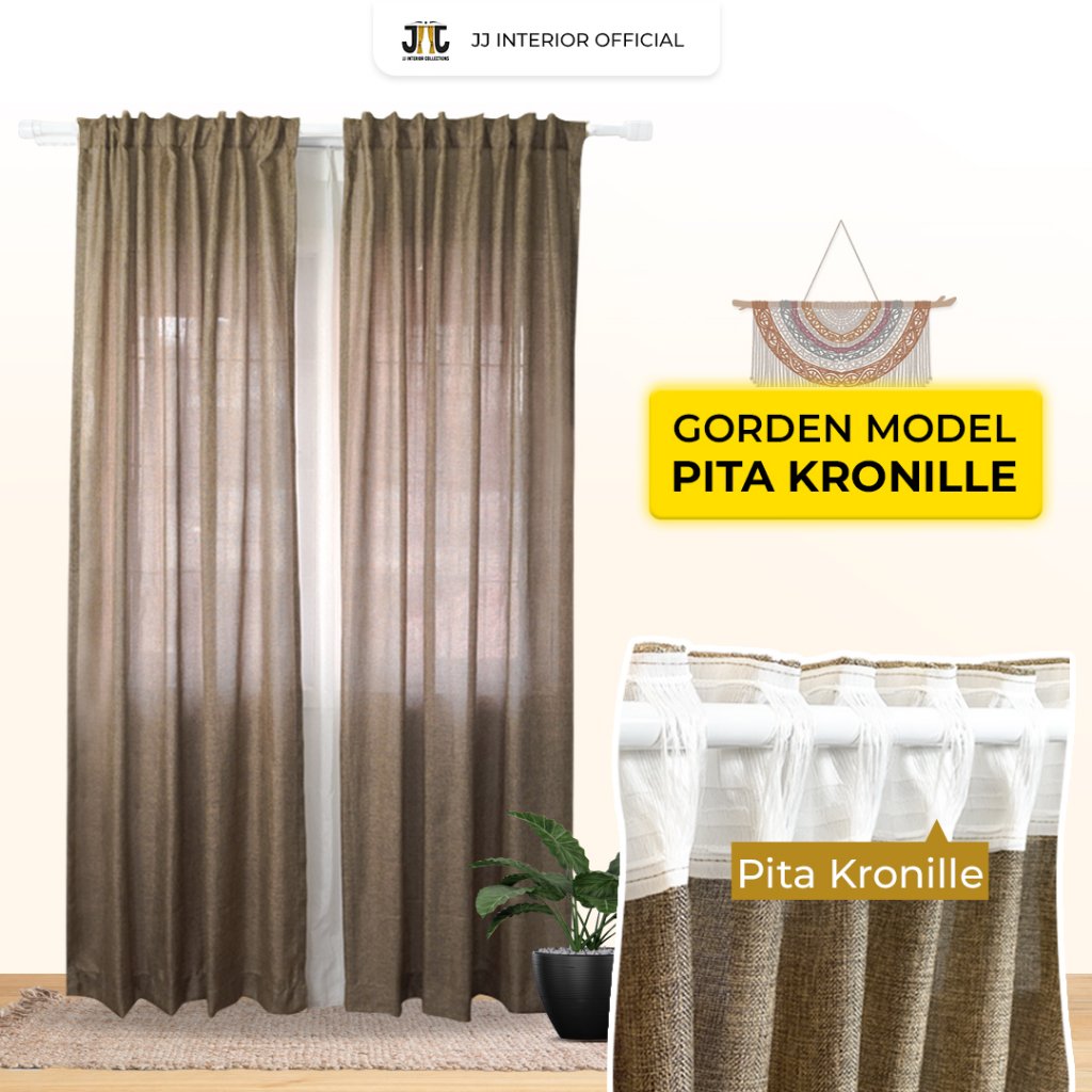 Gorden Jendela Pita Kronille Hordeng Minimalis Rustic Tebal Gorden Motif Kayu-Linen kronille