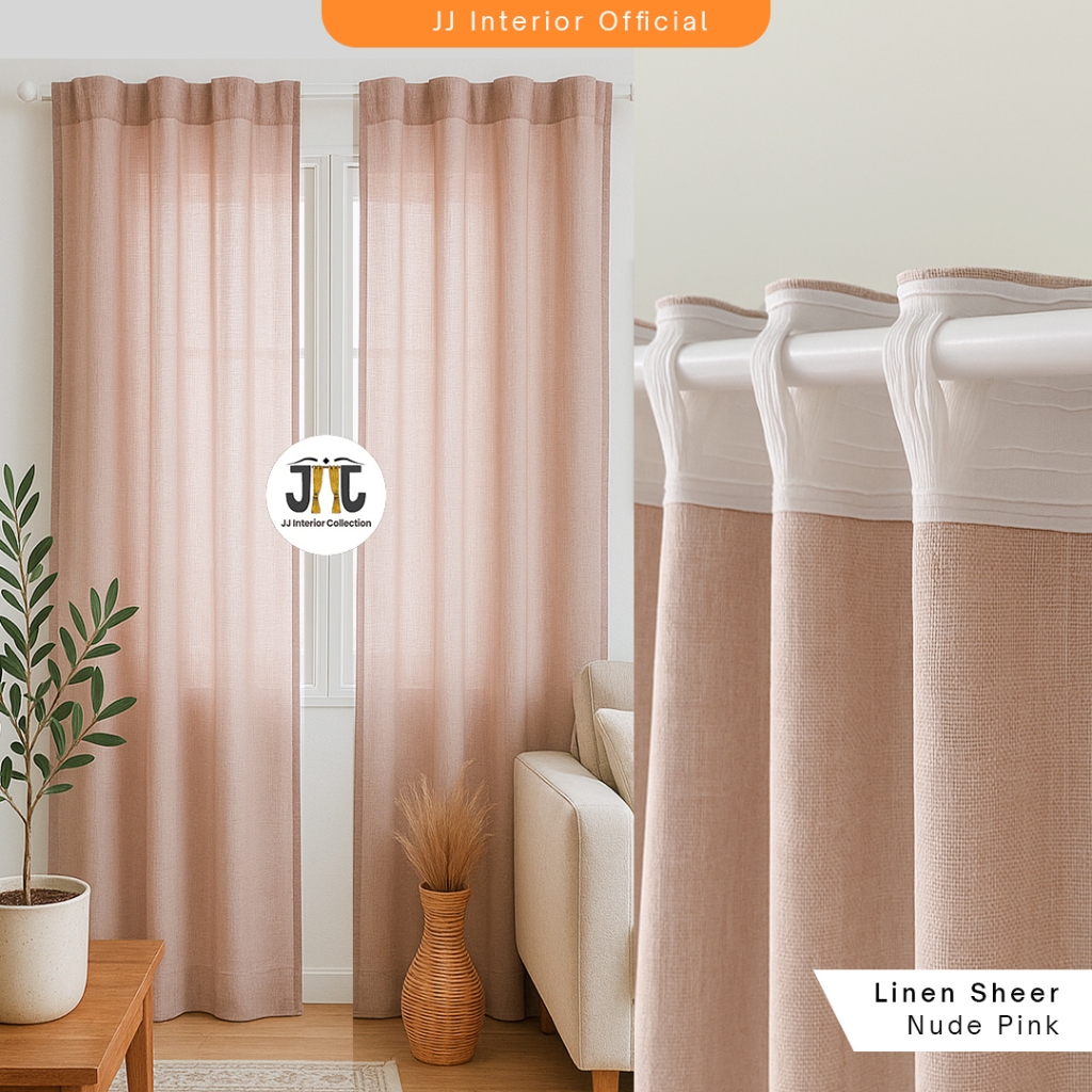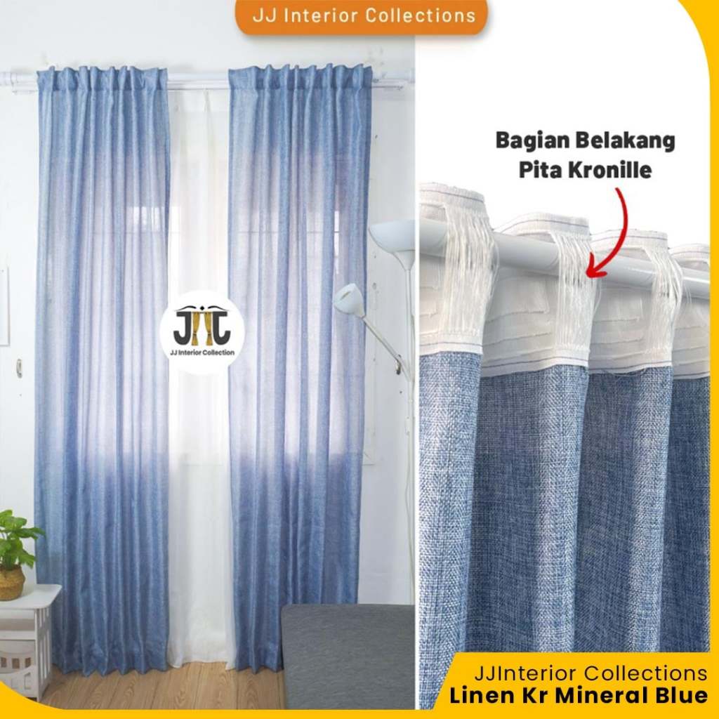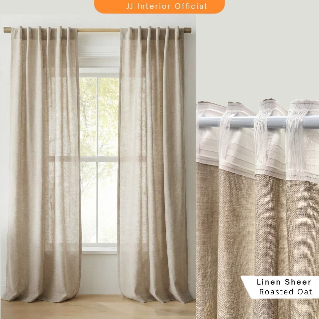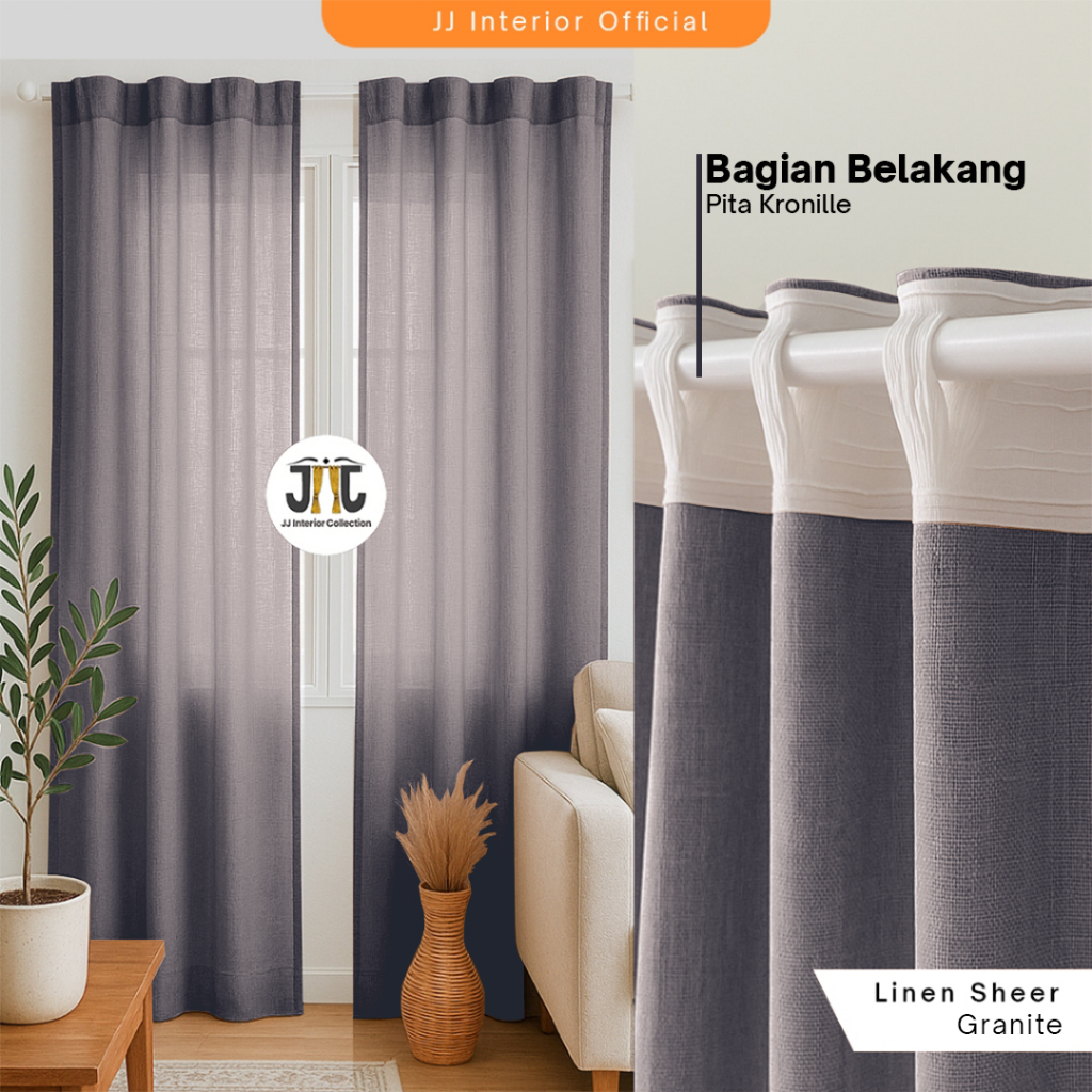 Gorden Jendela Pita Kronille Hordeng Minimalis Rustic Tebal Gorden Motif Kayu-Linen kronille