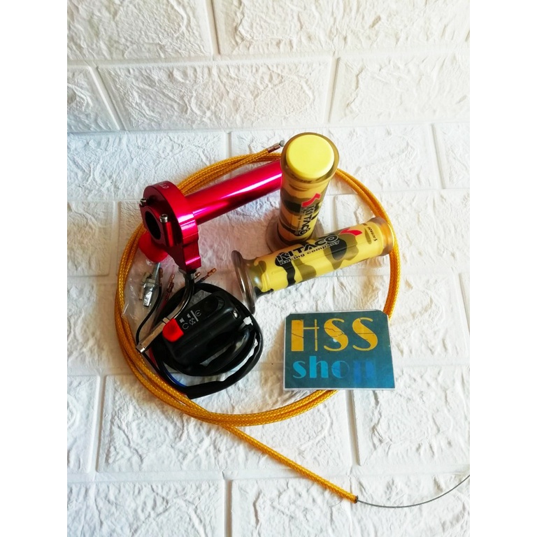 Gas Spontan 1 Kabel + Handgrip Kitaco + Saklar + 1 Kabel Gas Serat = Scorpio Z, F1ZR. Satria FU, Byson 150, Vixion Old, Rx - King