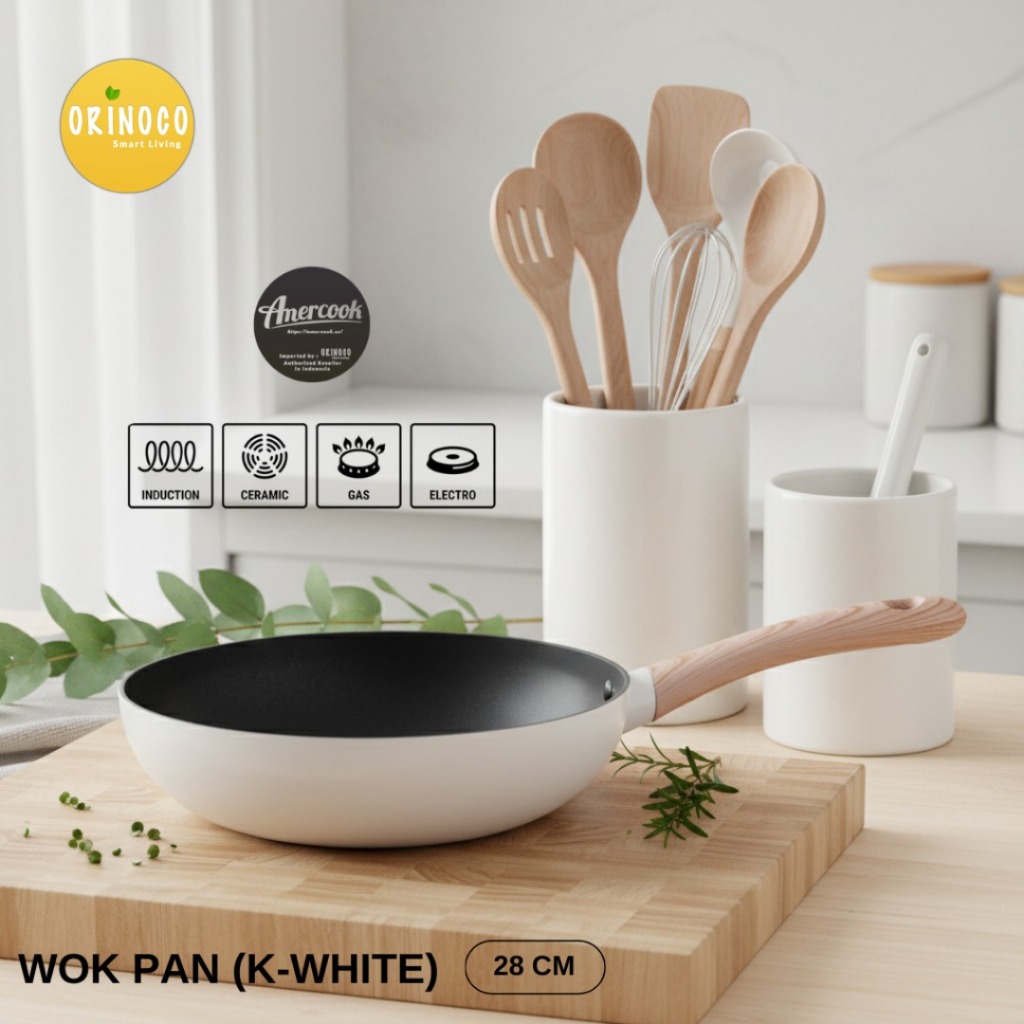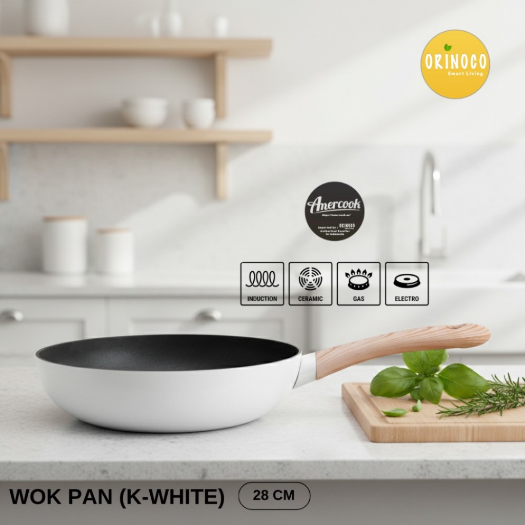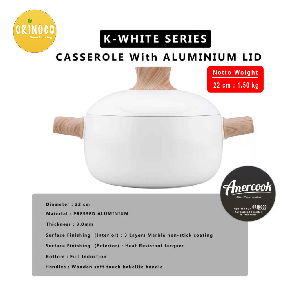 Amercook Cooking Cast Alumunium White Series Peralatan Masak Anti Lengket Marble Non-Stick