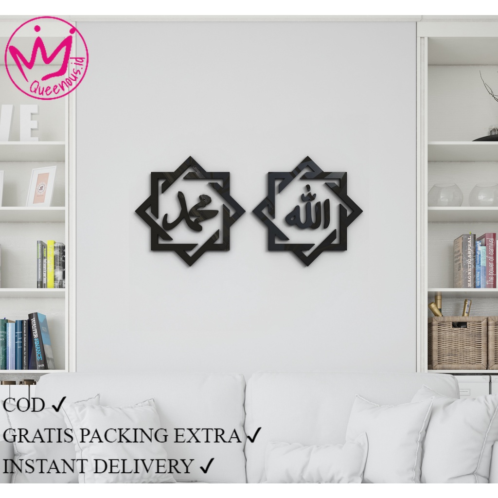 Ukuran 30x30cm / Kaligrafi Akrilik Lafadz Allah Muhammad Kaligrafi Acrylic 1 set Queenous.id