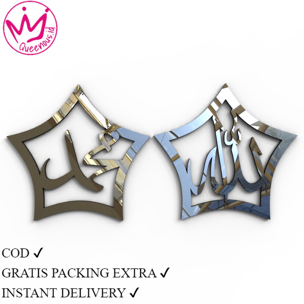KALIGRAFI AKRILIK MIRROR LAFADZ ALLAH - MUHAMMAD 1 SET FRAME/ BINTANG UKURAN BESAR MEWAH QUEENOUS.ID