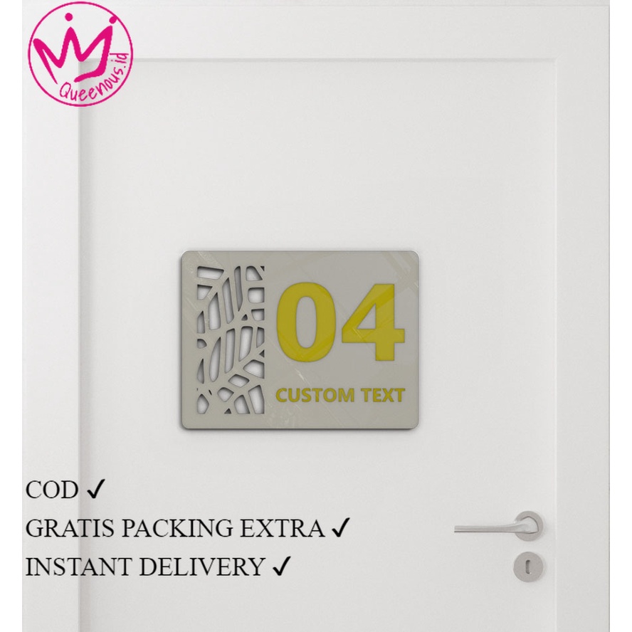 Nomor Rumah Akrilik Pola Daun 20x15cm/custom design/ custom huruf