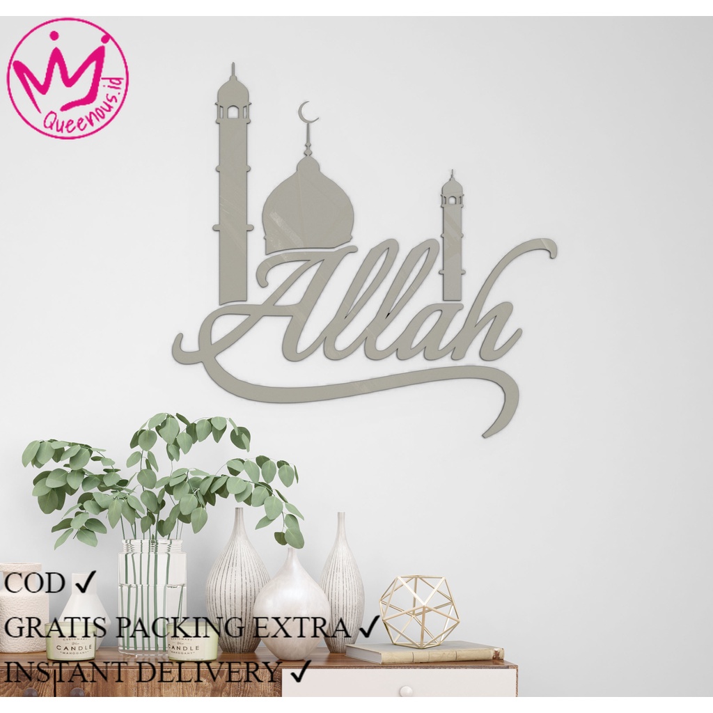 Akrilik Kaligrafi Kubah & Allah Huruf Sambung Akrilik 2mm Hiasan Dinding Islami / IslamicQueenous.id