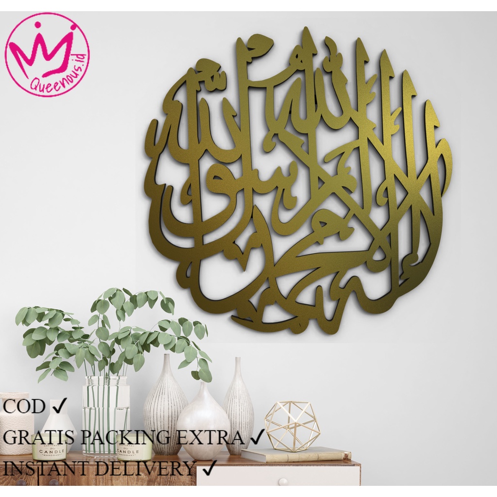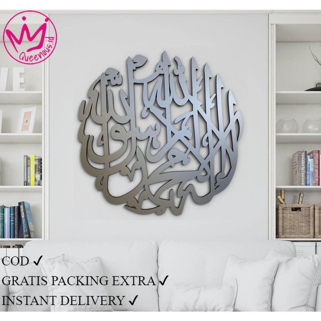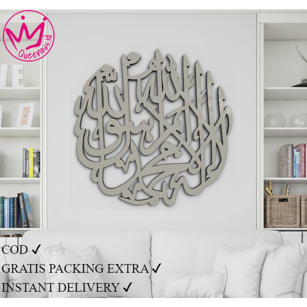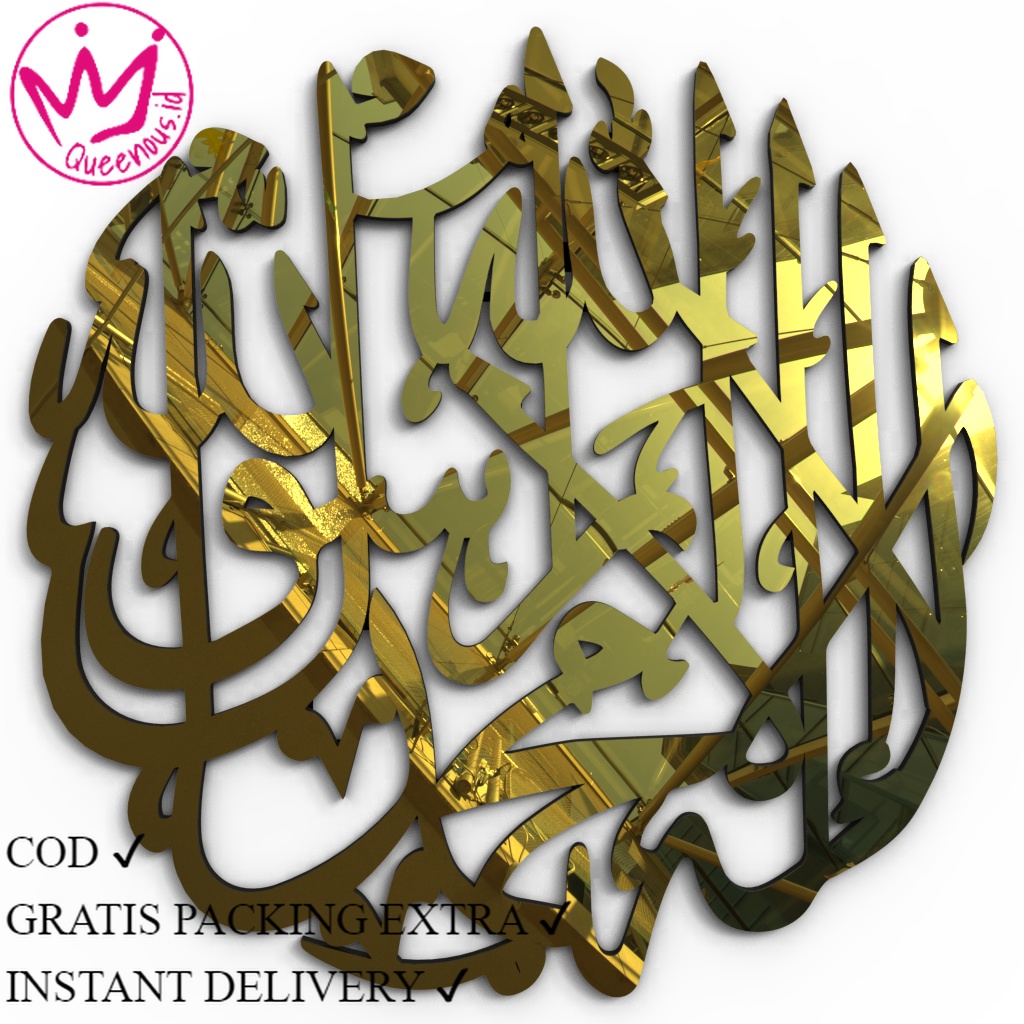 Kaligrafi Akrilik Mirror/Cermin "LAILAHAILLALLAH MUHAMMADARASULULLAH" Model Bulat BESAR Queenous.id