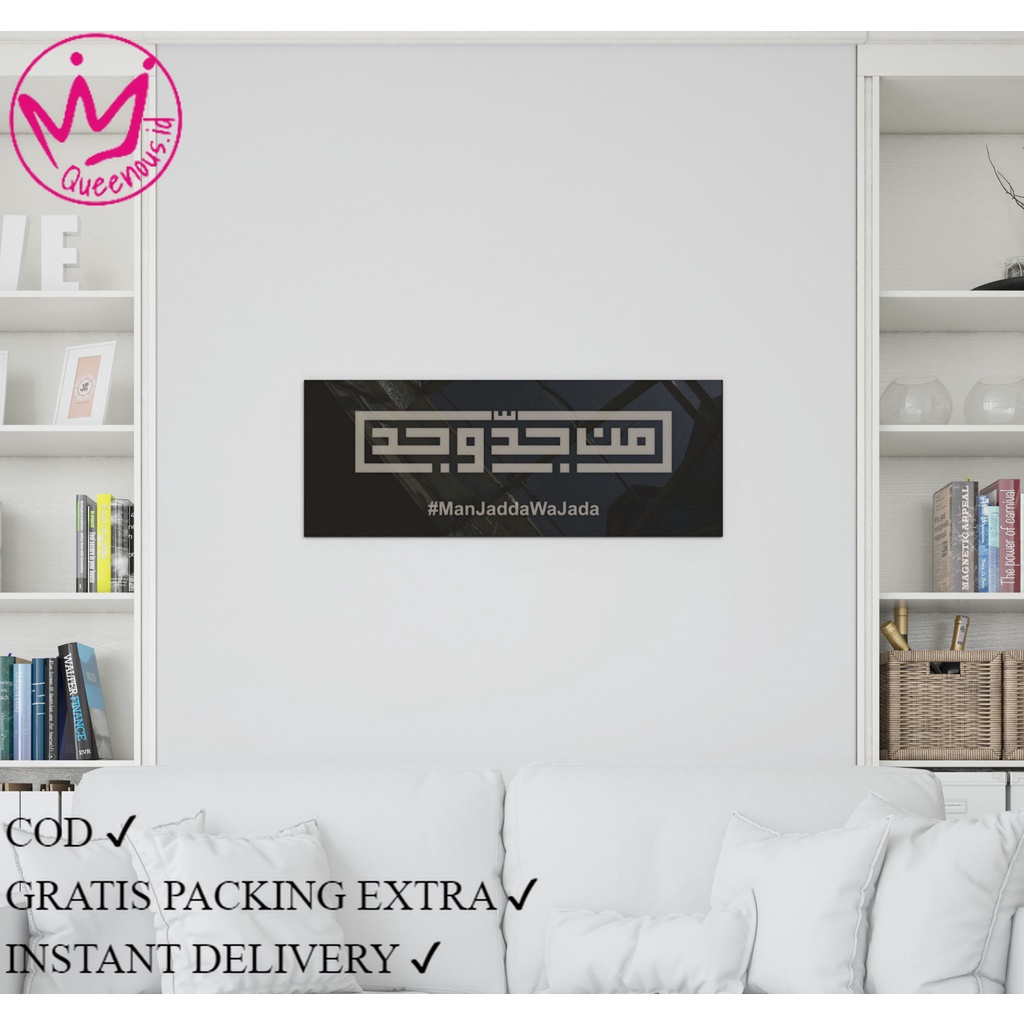 Akrilik Kaligrafi Quotes "MAN JADDA WAJADA" Model Landscape Hiasan Dinding Islami / Queenous.id