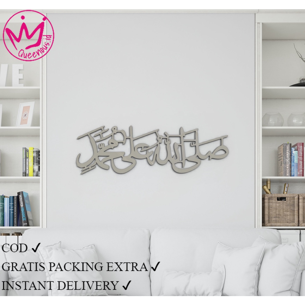 Akrilik Kaligrafi "SHALLALLAHU 'ALA MUHAMMAD" Ukuran KECIL HIASAN KALIGRAFI MEWAH Queenous.id