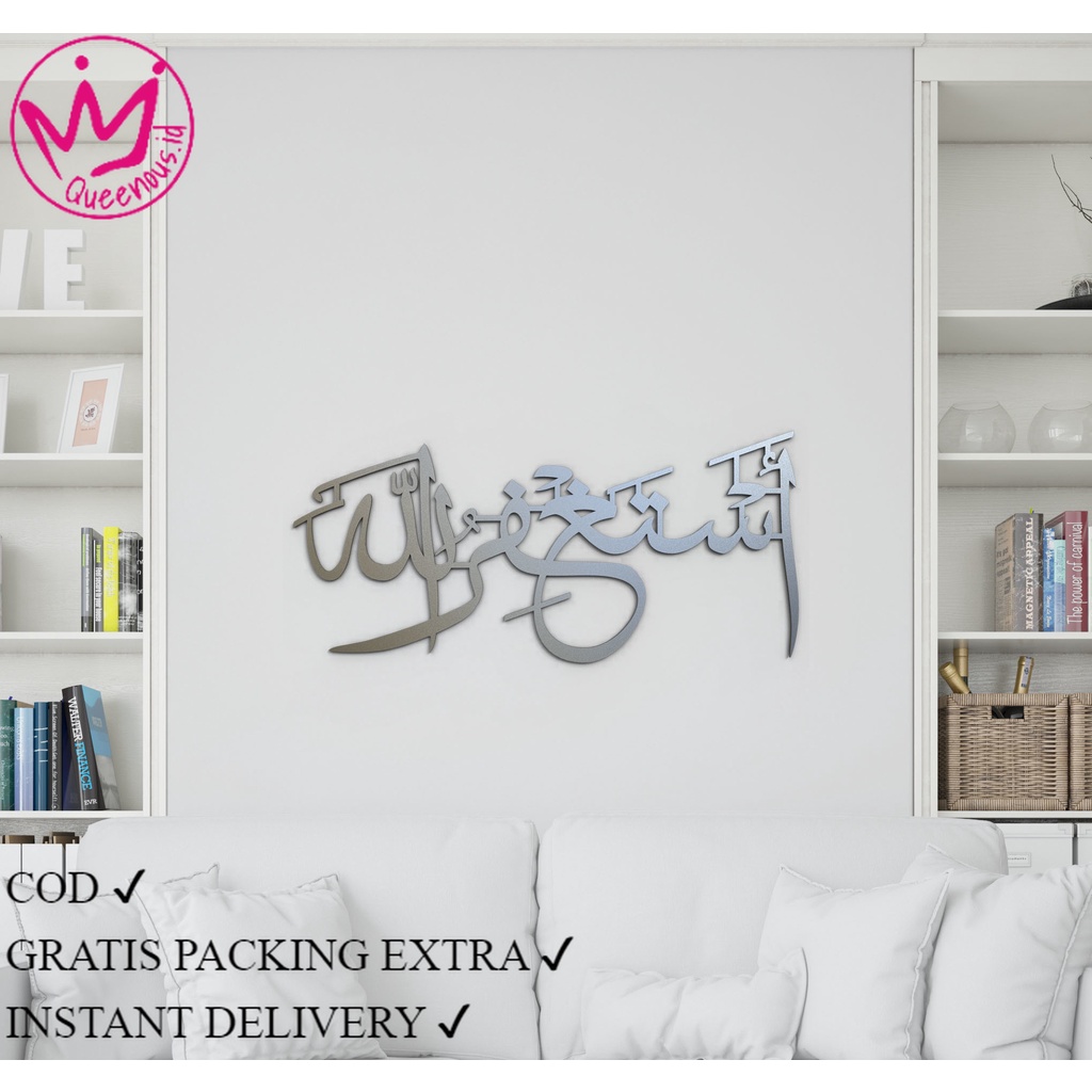 AKRILIK KALIGRAFI KALIMAT ISTIGHFAR "ASTAGHFIRULLAH" CUSTOM UKURAN KECIL MODERN QUEENOUS.ID
