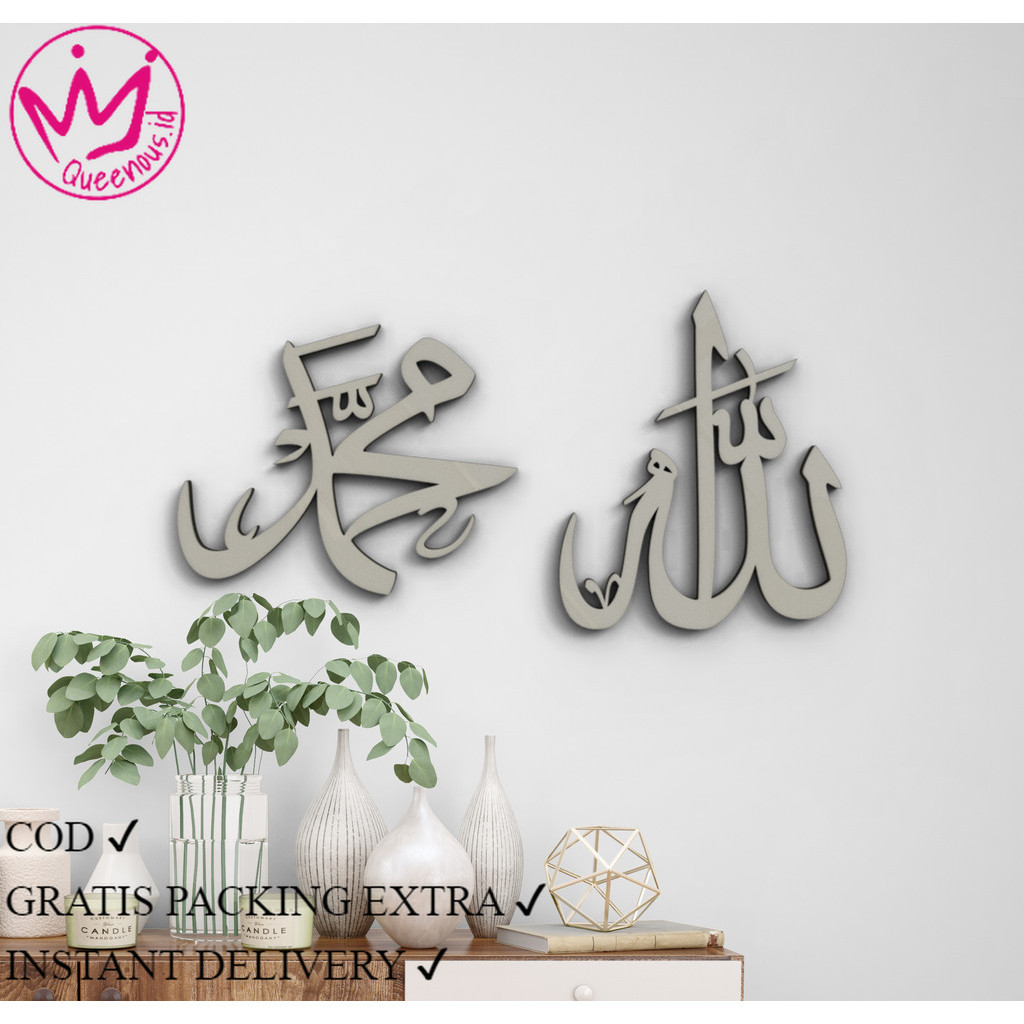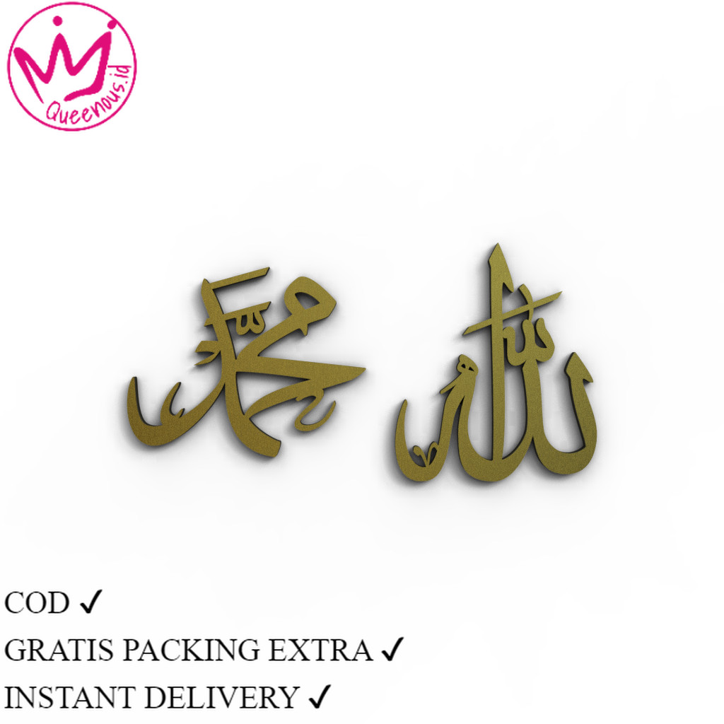 Kaligrafi Akrilik 1 Set Lafadz Allah & Muhammad Custom Ukuran Kecil Hiasan dinding Queenous.id