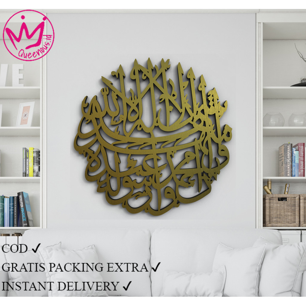 Akrilik Kaligrafi "2 KALIMAT SYAHADAT" Model Bulat Hiasan Dinding Modern Ukuran Besar Queenous.id