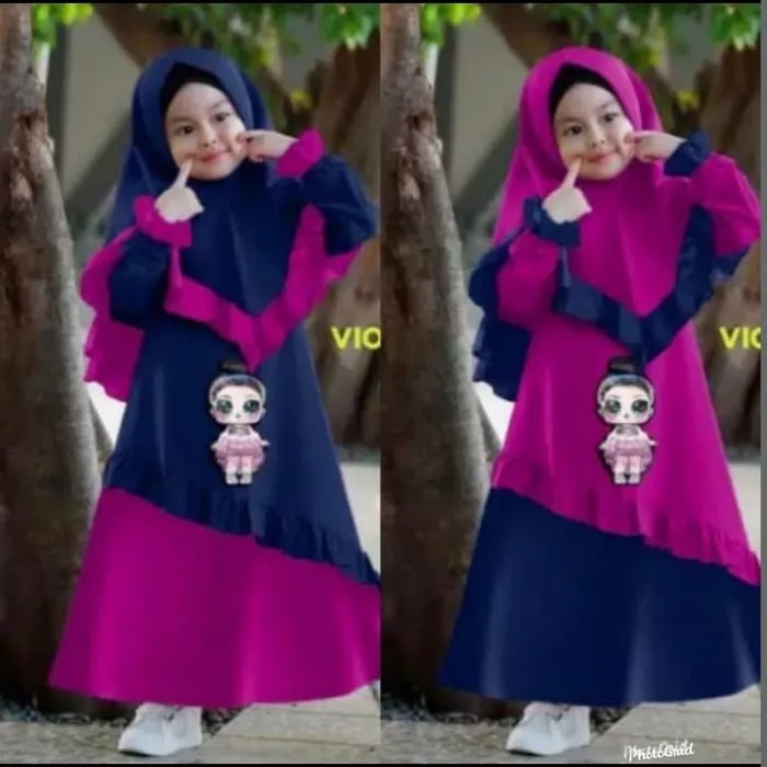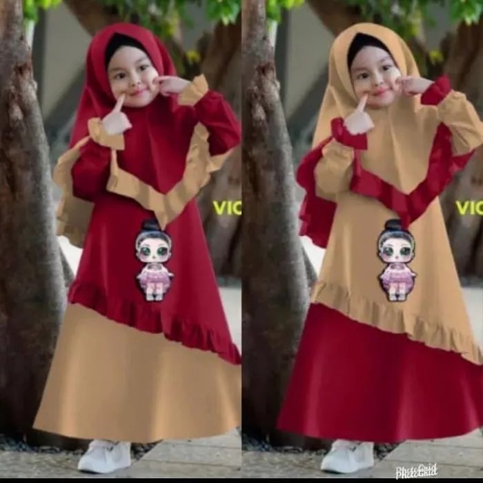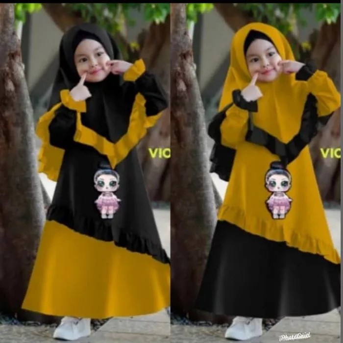 SETELAN BAJU GAMIS ANAK PEREMPUAN MUSLIM LOL LED NYALA 4 5 6 tahun