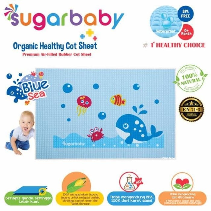 Sugar Baby Organic Perlak / Rubber Cot Sheet Newborn Waterproof - Perlengkapan Anak Bayi Perlak Organik Ondo Alas Ompol Karet