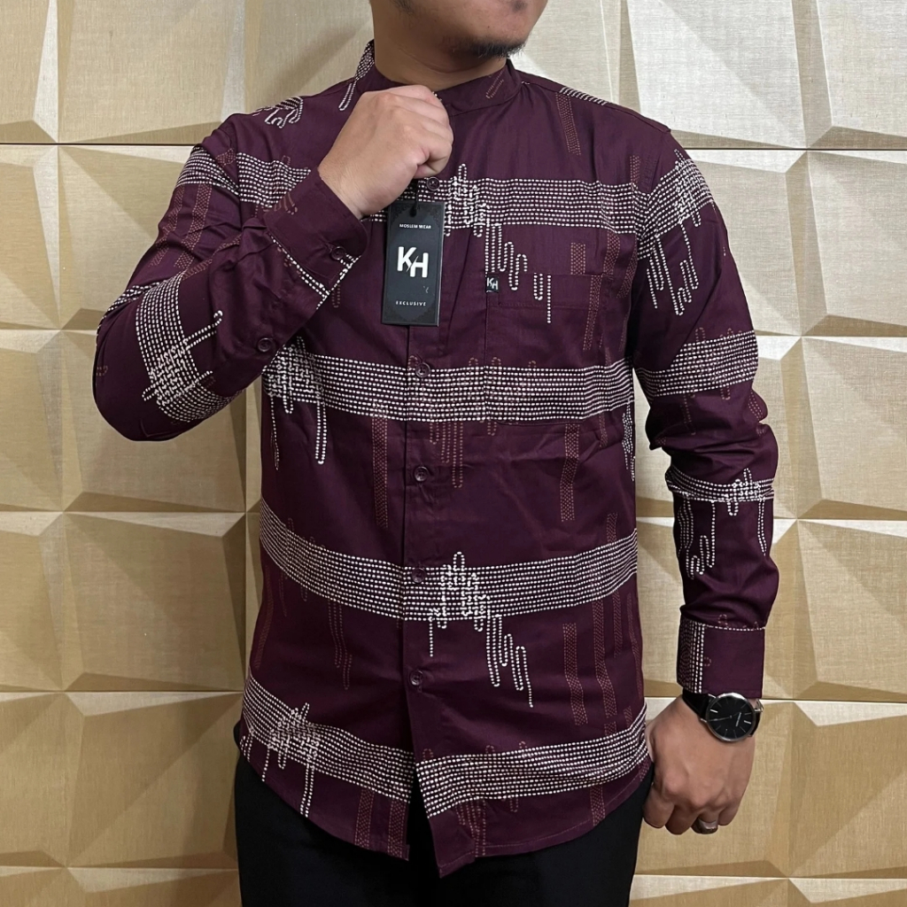 kemko KH Kemeja Koko pria Lengan Panjang Grafis Slimfit Premium Motif Terbaru Jumbo