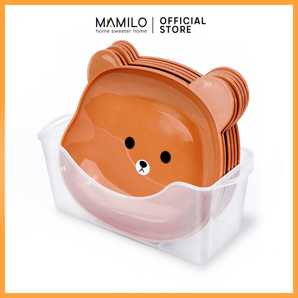 MAMILO Piring Makan Plastik Small Plate Set 6 In 1 Karakter Beruang