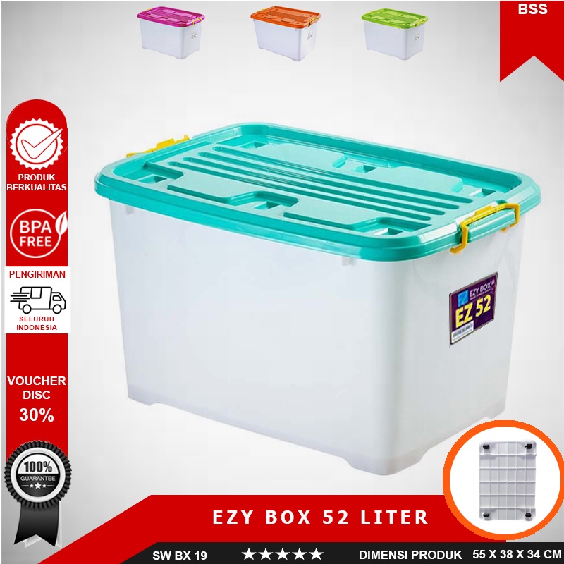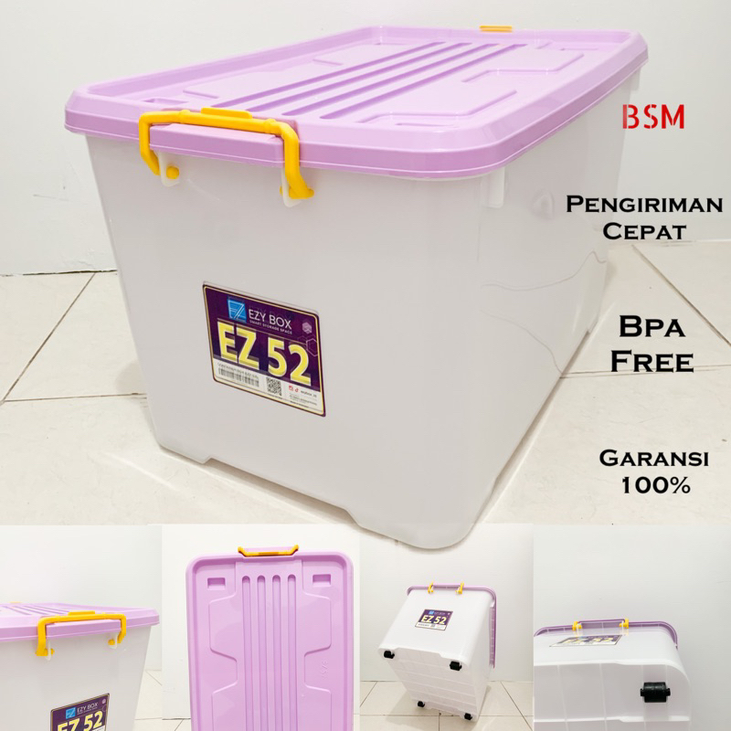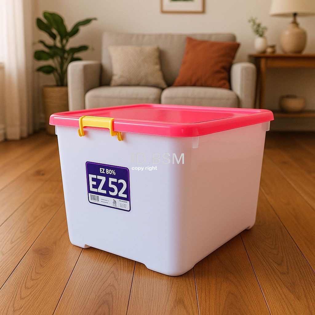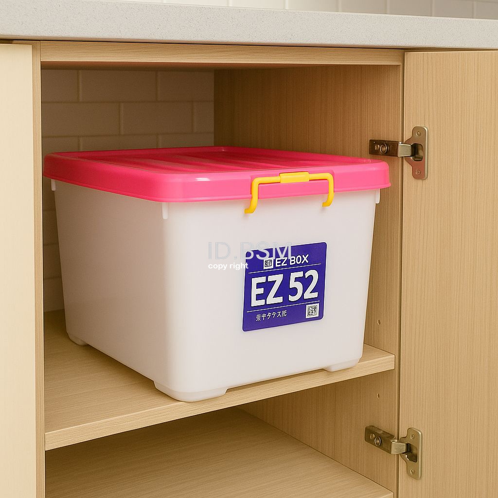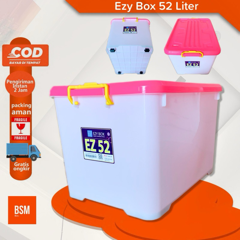 BOX CONTAINER 52 LITER Ezy | Kotak Penyimpanan Barang Rumah Tangga Serbaguna | Dengan Roda + Bahan Plastik Tebal Kuat - ID.BSM