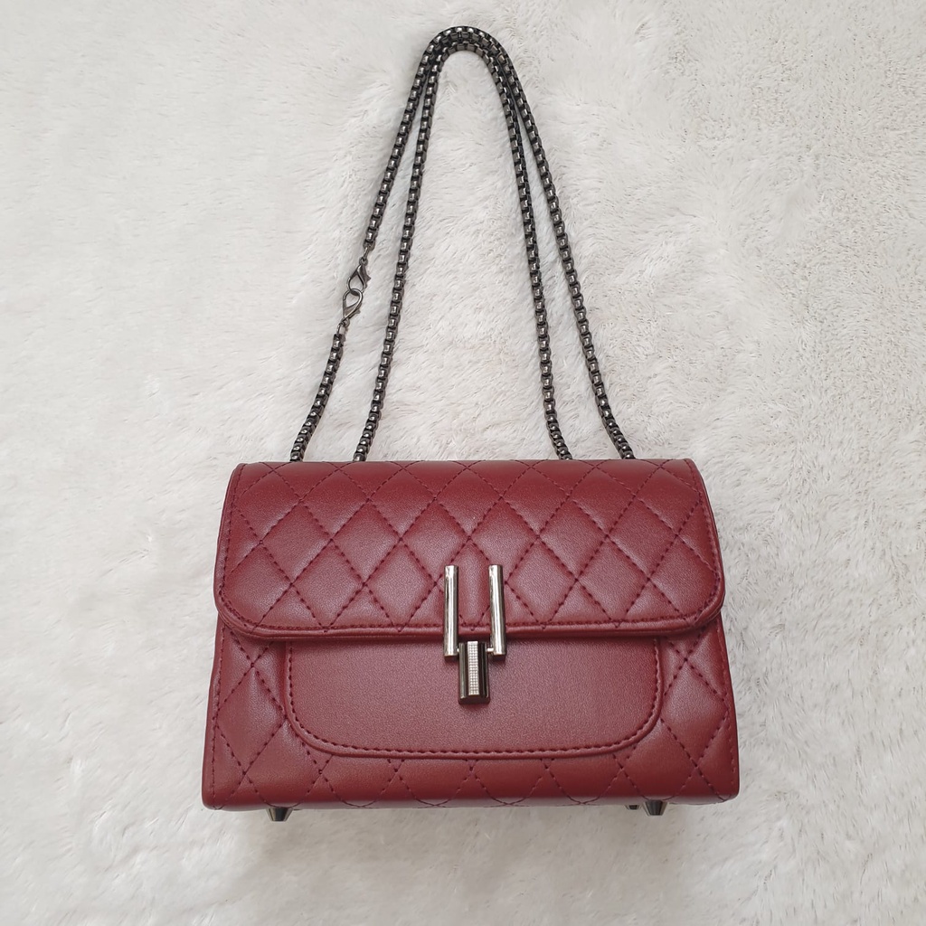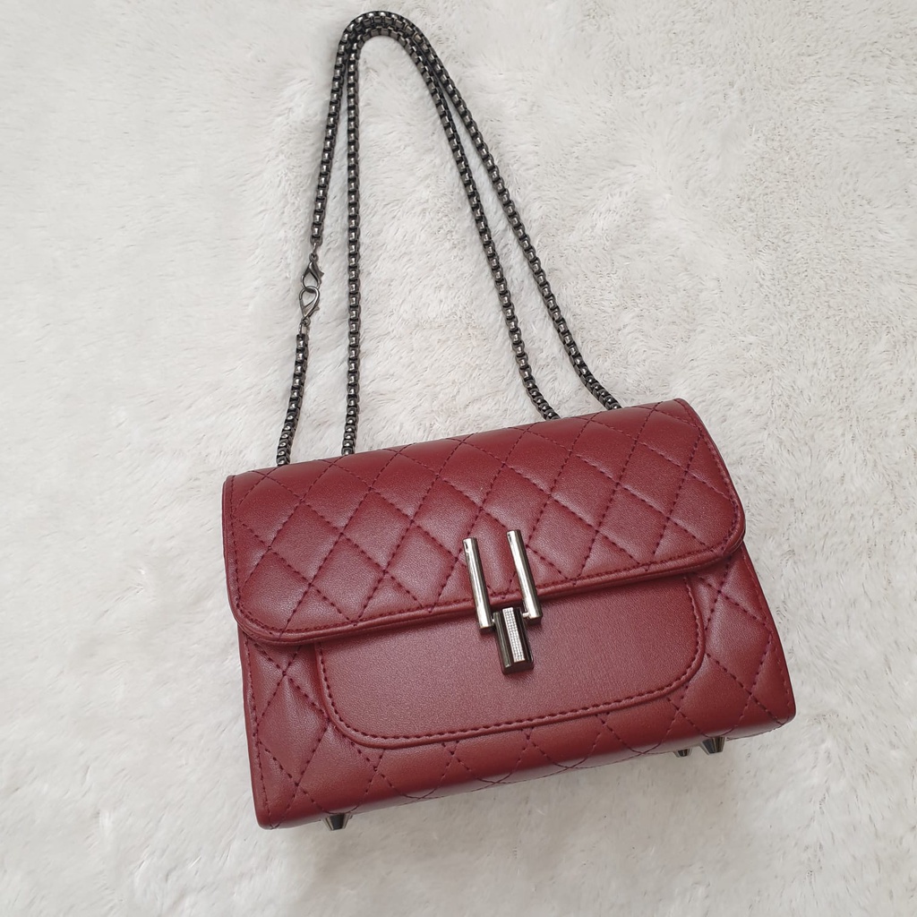 (Free Gift) Enola Tas Selempang Wanita Tali Rantai Tas Embose Perempuan Premium 7045
