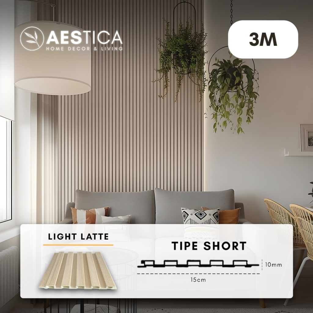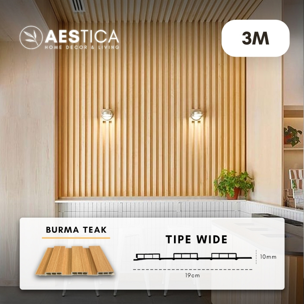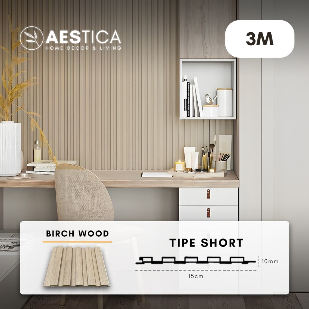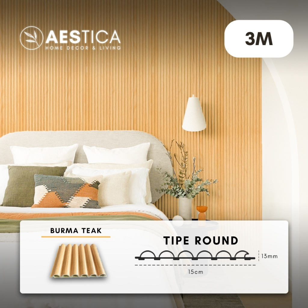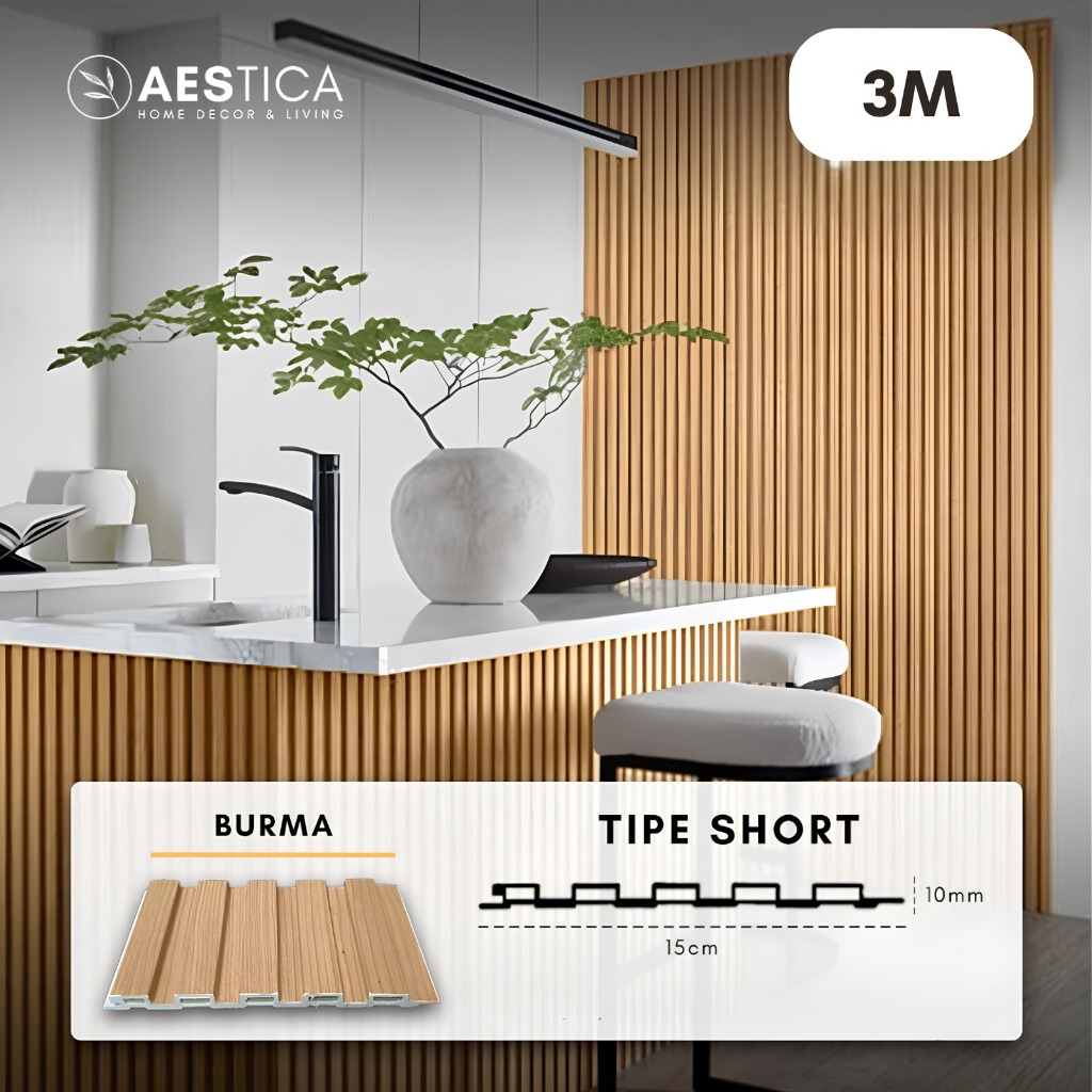 WPC Wood Wall Panel 3M Fluted Short Wide Wave Round Aestica Dekor Dinding Rumah Kantor Cafe Klinik