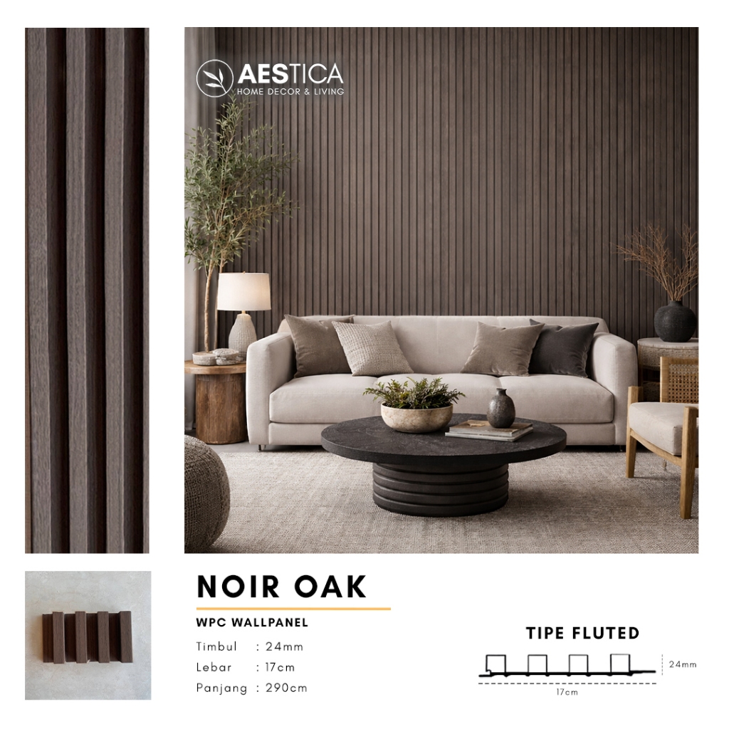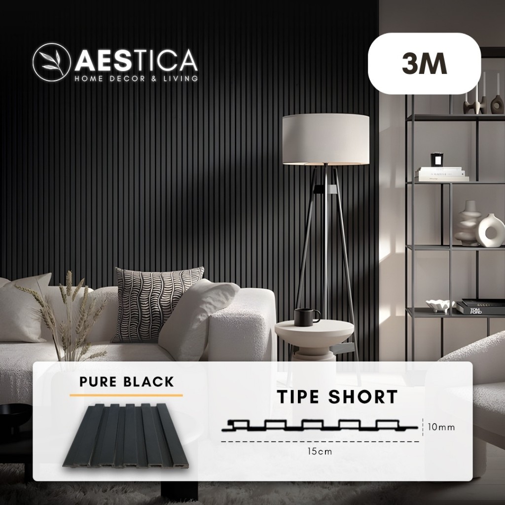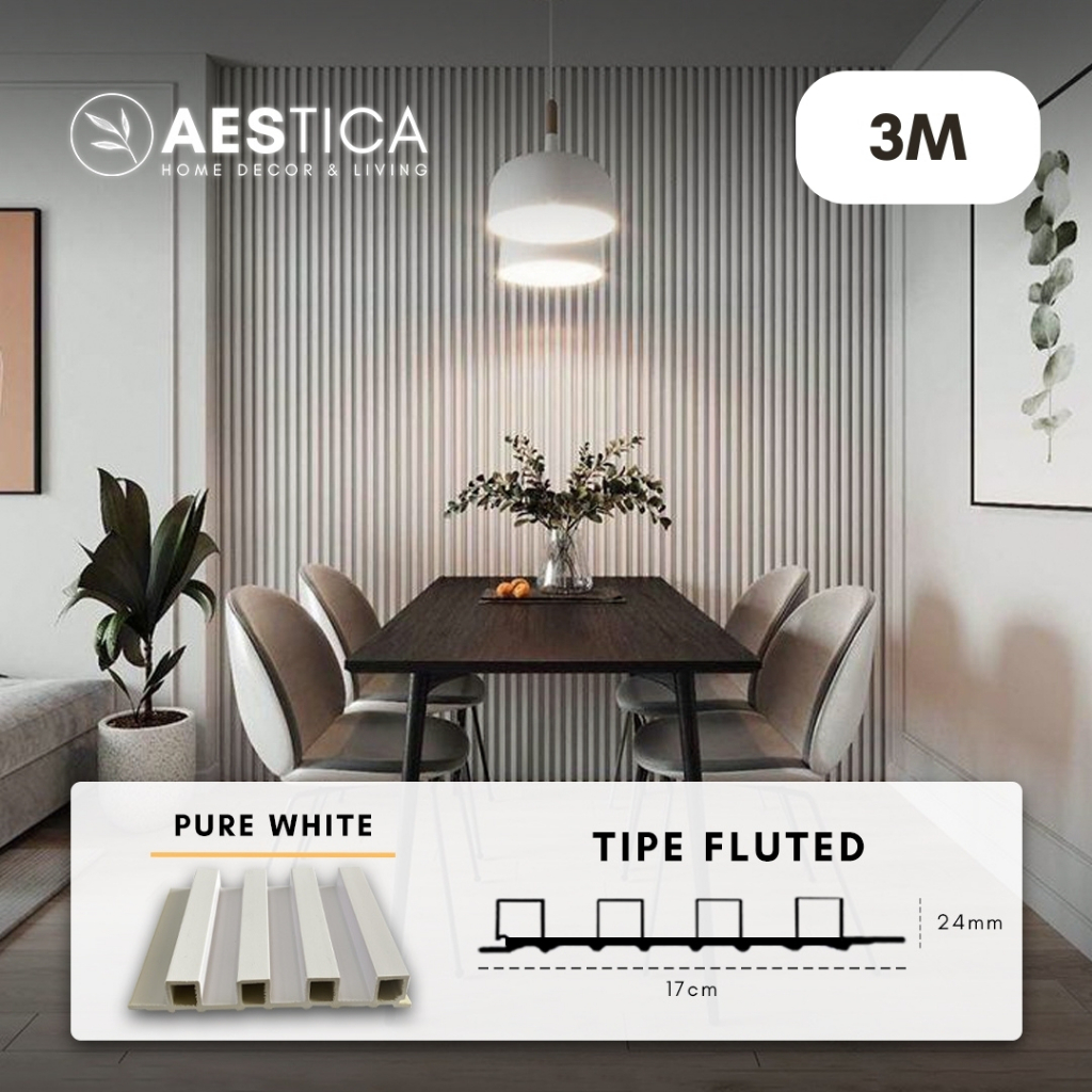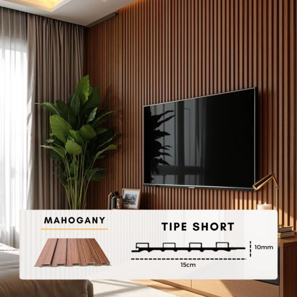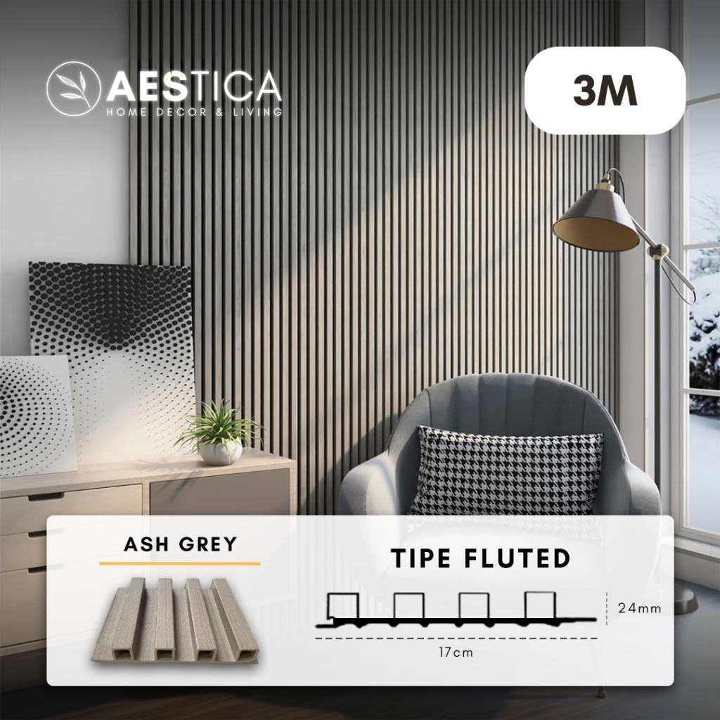WPC Wood Wall Panel 3M Fluted Short Wide Wave Round Aestica Dekor Dinding Rumah Kantor Cafe Klinik