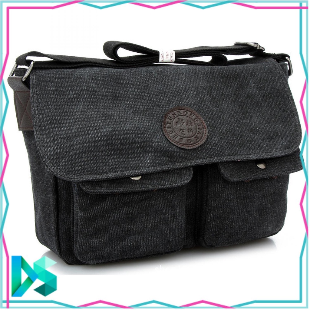 Tas Selempang Bahu Pria Tas Kerja Cowok Bahan Kanvas Messenger Bag Bahan Canvas