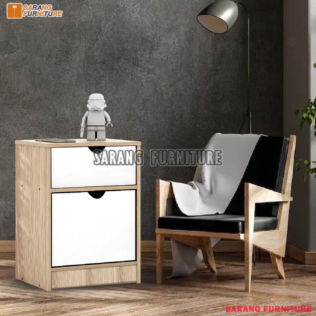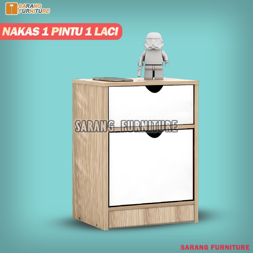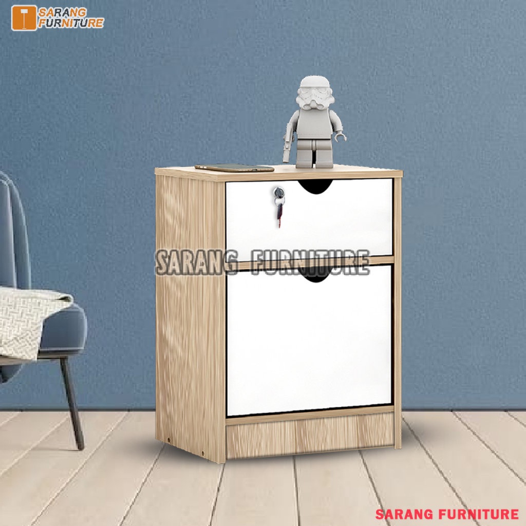Nakas Samping Tempat Tidur Meja Nakas 1 Laci 1 Pintu Nakas Minimalis dengan Kunci Nakas Serbaguna