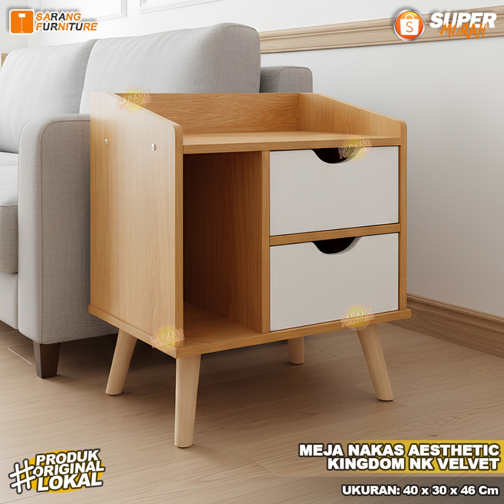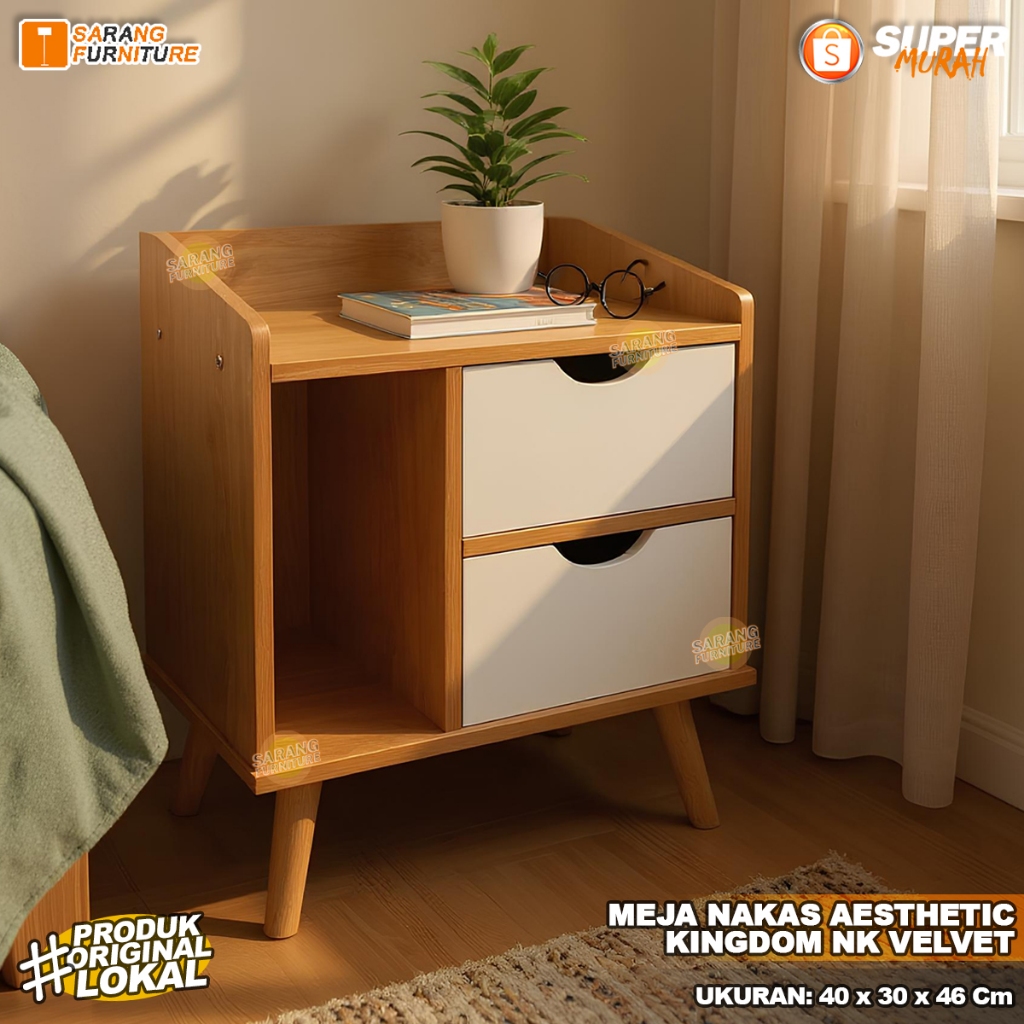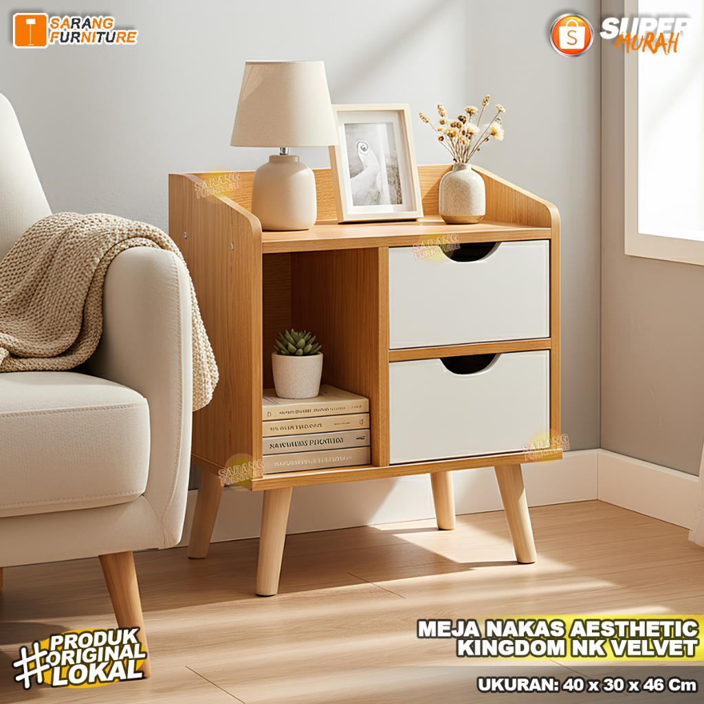 Meja Nakas Bedside Table Meja Nakas Samping Tempat Tidur Rak Serbaguna Nakas Kayu Kingdom NK Velvet