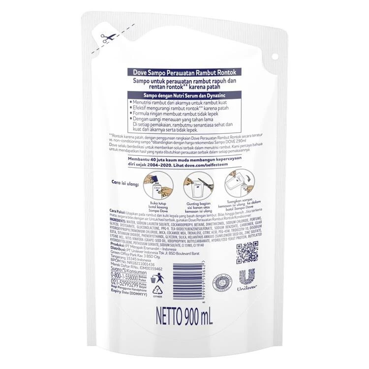 Dove Shampoo Perawatan Rambut Rontok Pouch 900ml