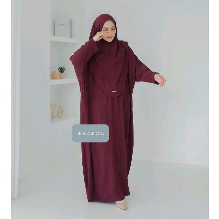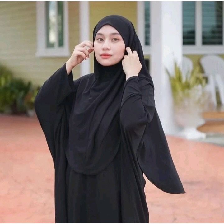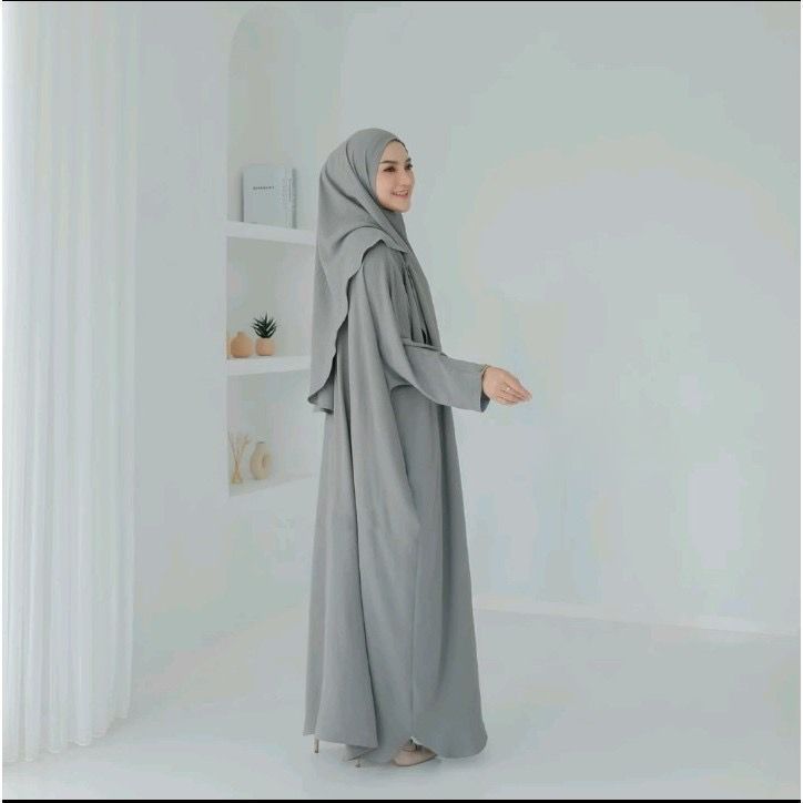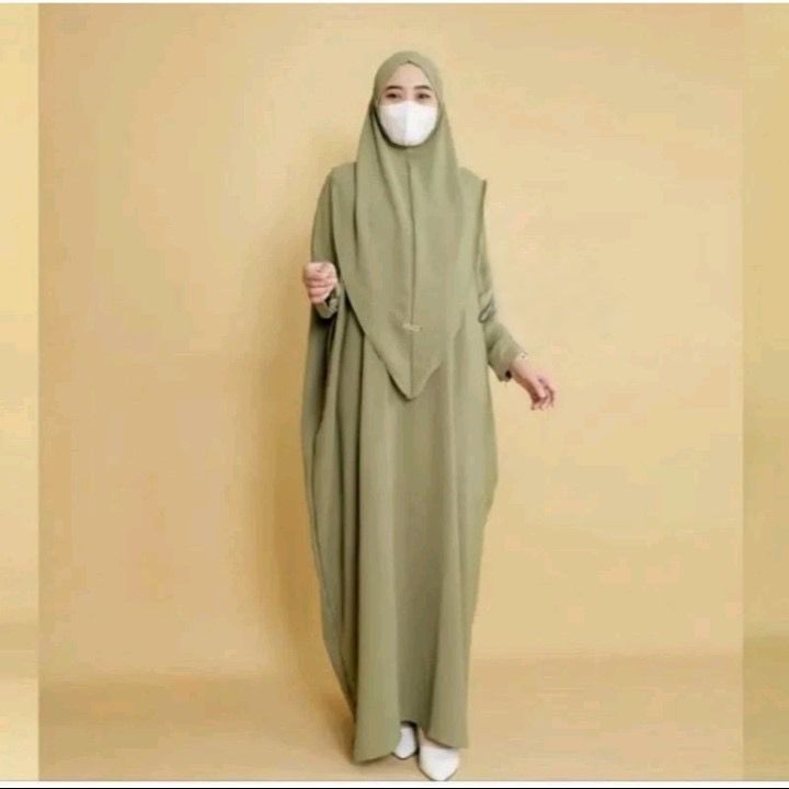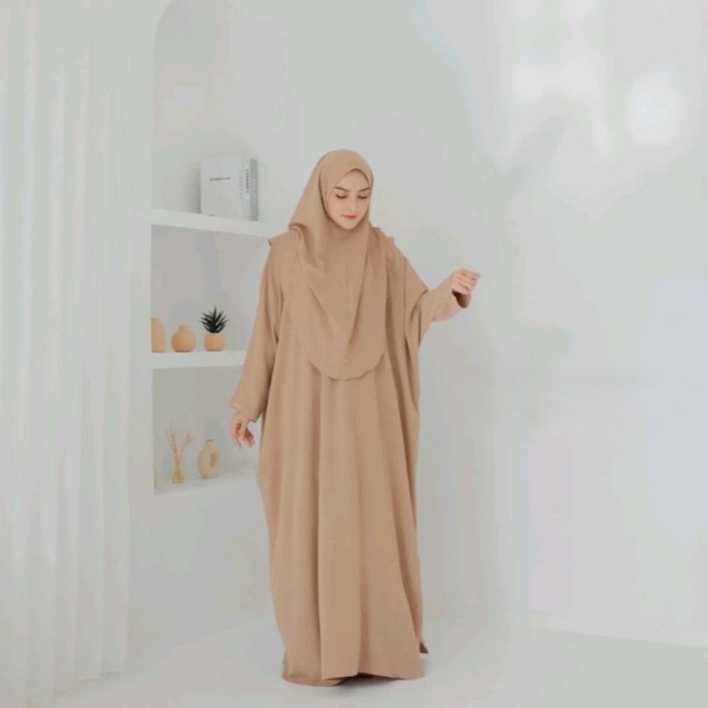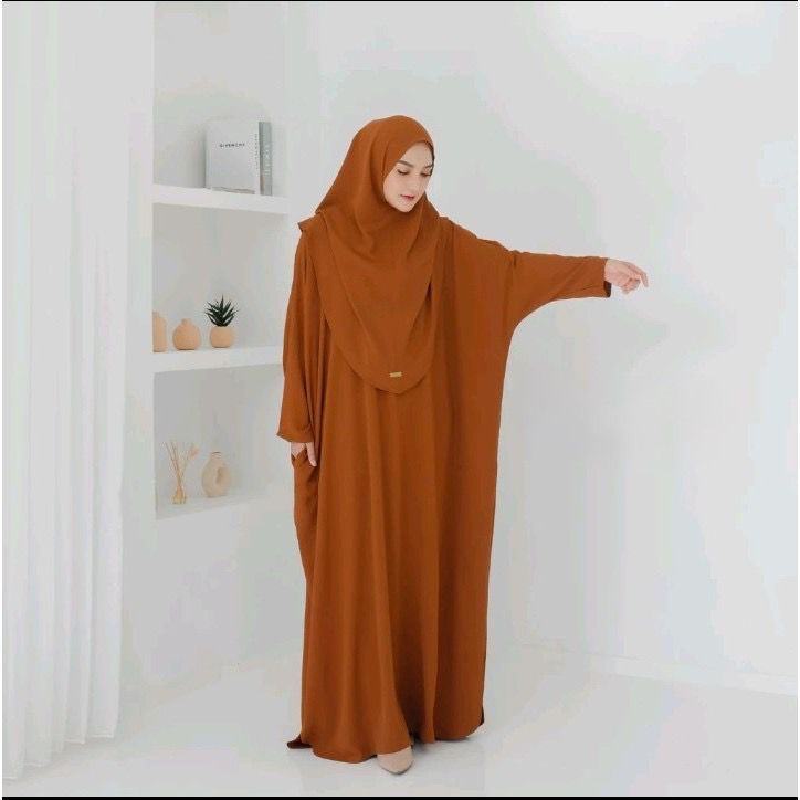 Safina Abaya Set Hijab Kaftan Gamis Lebaran Haji Batwing Dress Jumbo Bahan Cringkle Airflow