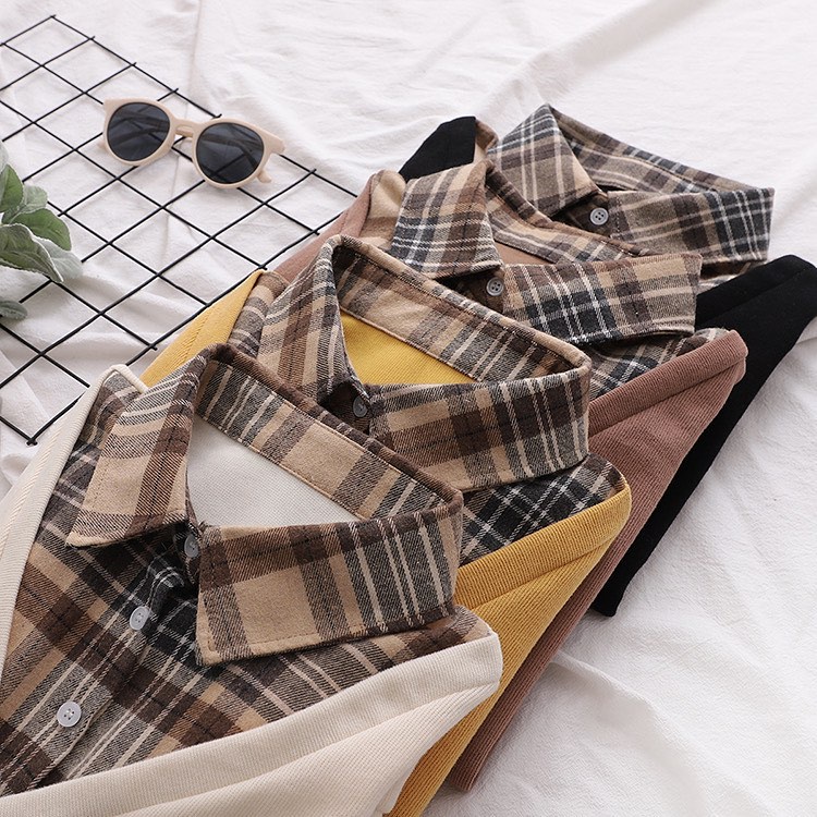Vallina Outfit Kimberly Flanel Blouse Combi Fold Terry Shirt Atasan Kemeja Flannel Top Muslim Wanita