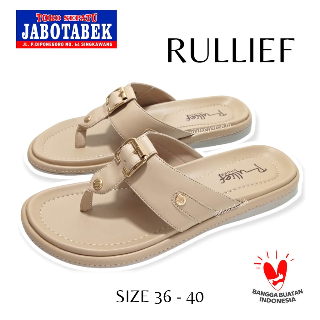 [COD] Sandal cewek jepit casual santai RULLIEF size 36 37 38 39 40 cream beige simple polos minimalis non slip flat sole teplek / Sendal fashion wanita kasual terbaru tanpa hak / Sandal perempuan modis cantik lokal termurah Indonesia daily sehari-hari