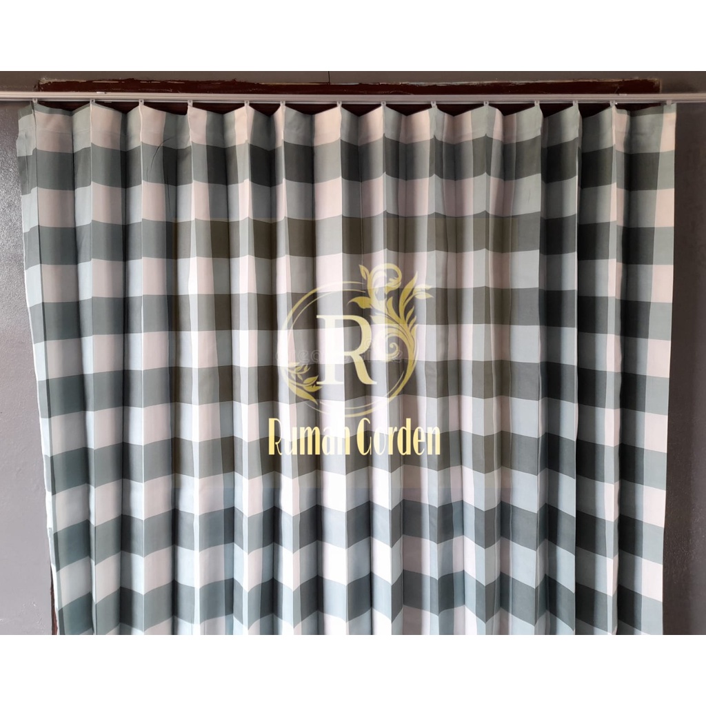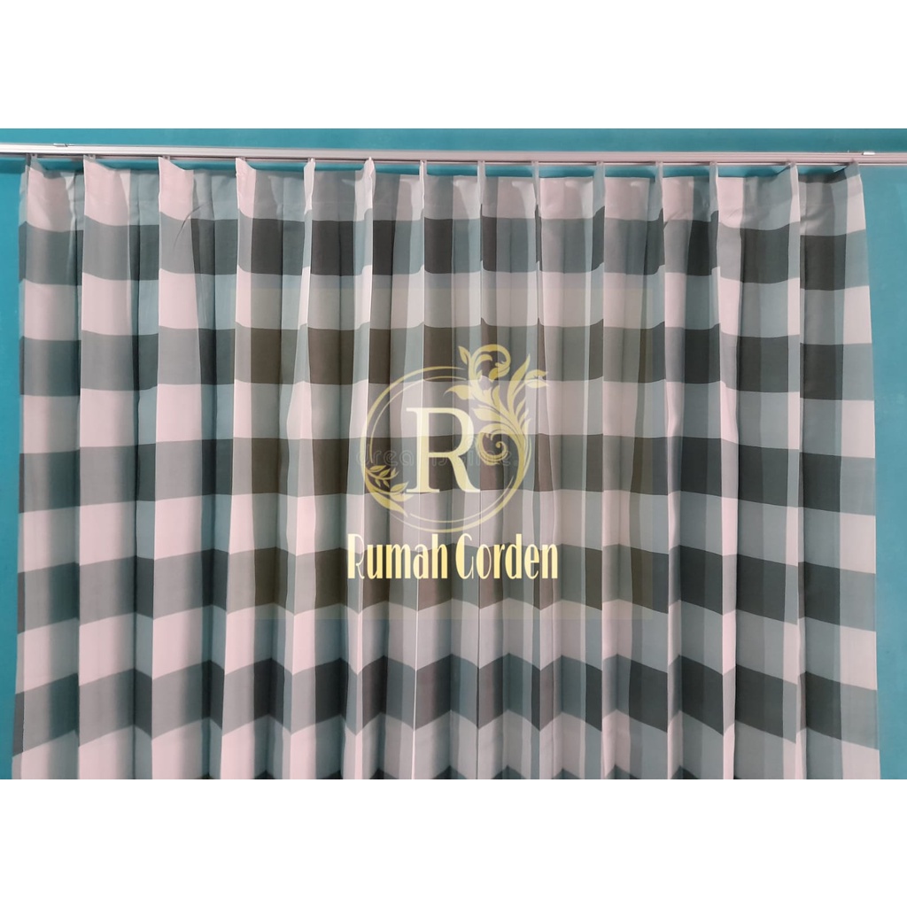 gorden jendela gorden pintu minimalis / tirai gorden motif aesthetic kotak kotak emily plisket