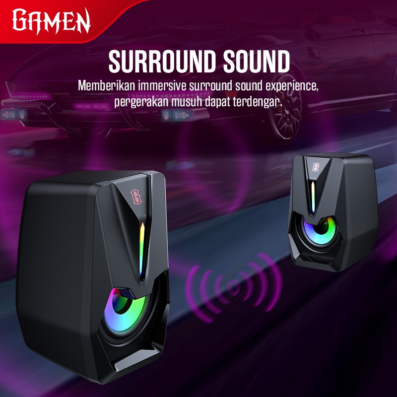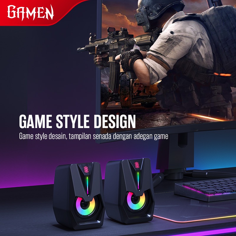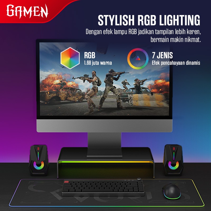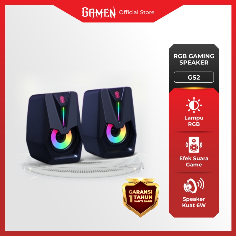 GAMEN Speaker PC Gaming Surround Sound 7 Mode RGB 6W GS2 USB/AUX Laptop / PC / Komputer Powerful Bass Speaker Laptop Full Bass Speaker Komputer Speaker Bass Speaker Monitor Speaker Gaming Speaker Computer Original - Garansi 1 Tahun