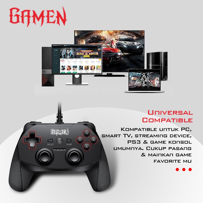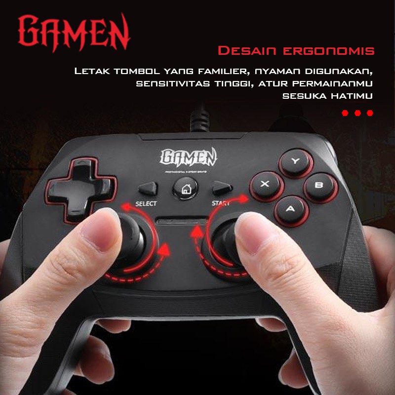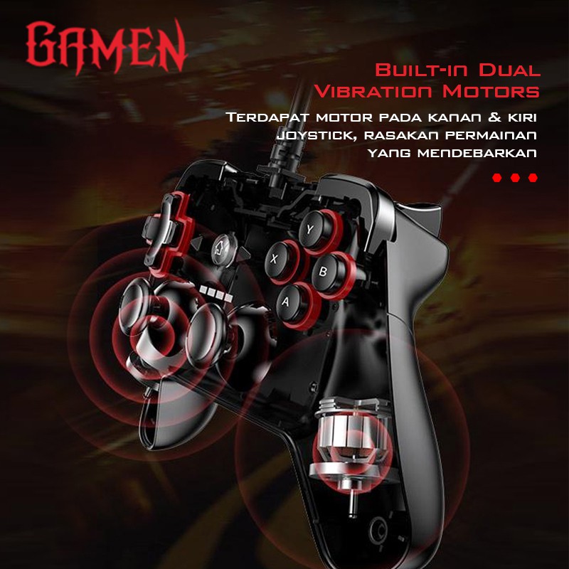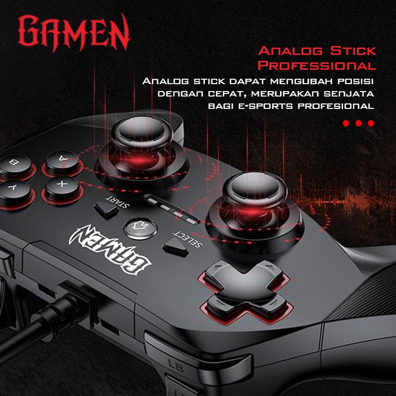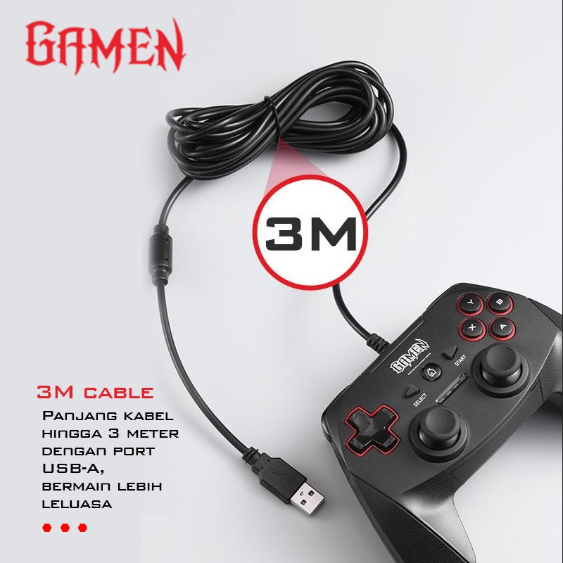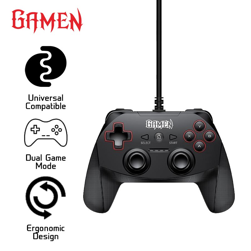 GAMEN GP100 Universal Wired Gaming Controller Gamepad with Dual Vibration Motors Black-Garansi 1 Th
