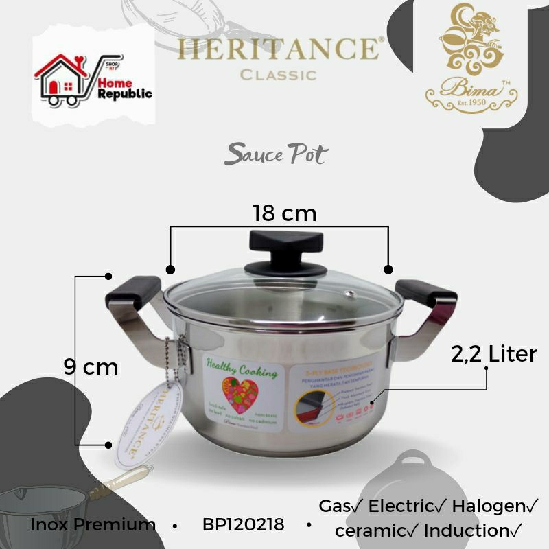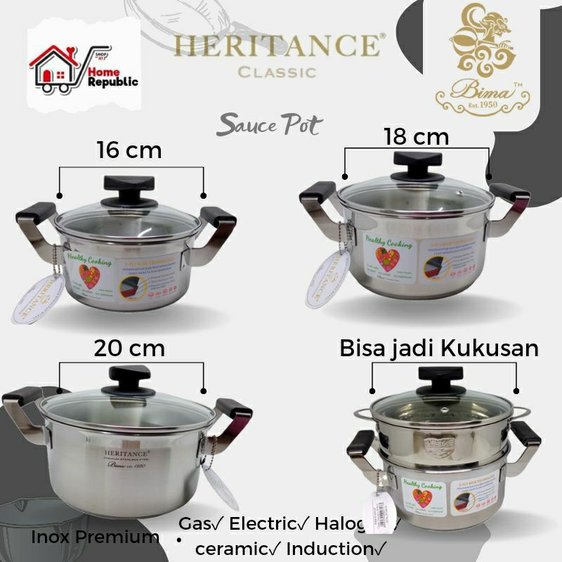 Bima Heritance Saucepot 20cm 18cm 16cm Panci Stainless Induction BP120220 BP120218 BP120216