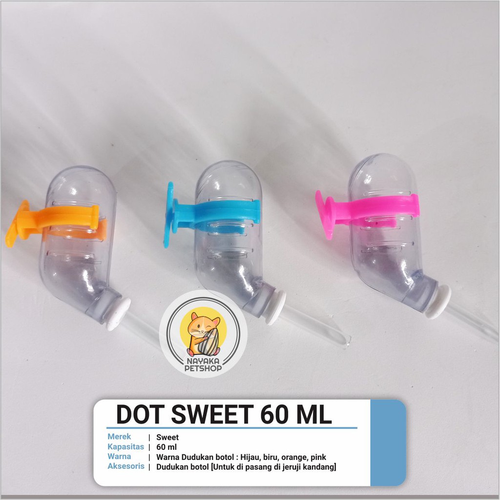Sweet 60 ml Dot Botol Tempat Minum Hewan Hamster Tupai Bajing Gerbil Sugar Glider Tikus