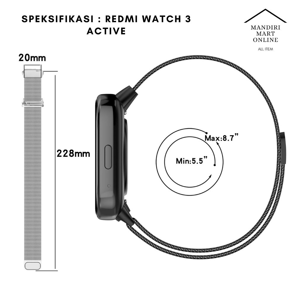 Strap Redmi Watch 3 / Redmi Watch 3 Active Stainless Tali Pengganti Bahan Stainless