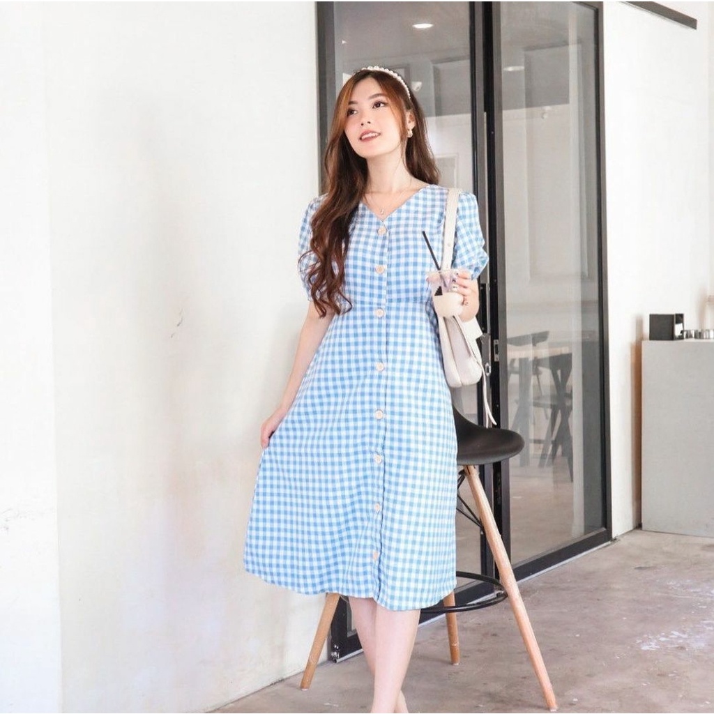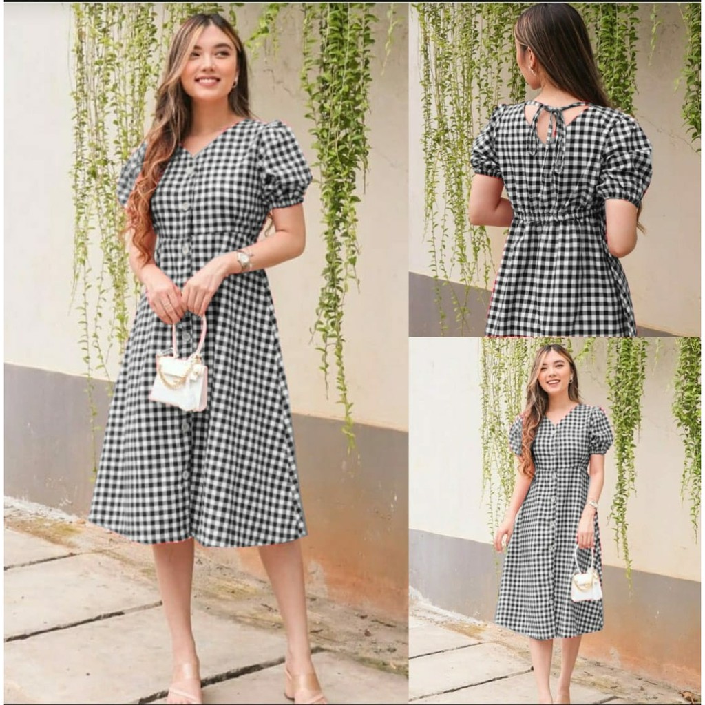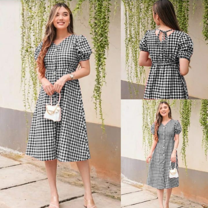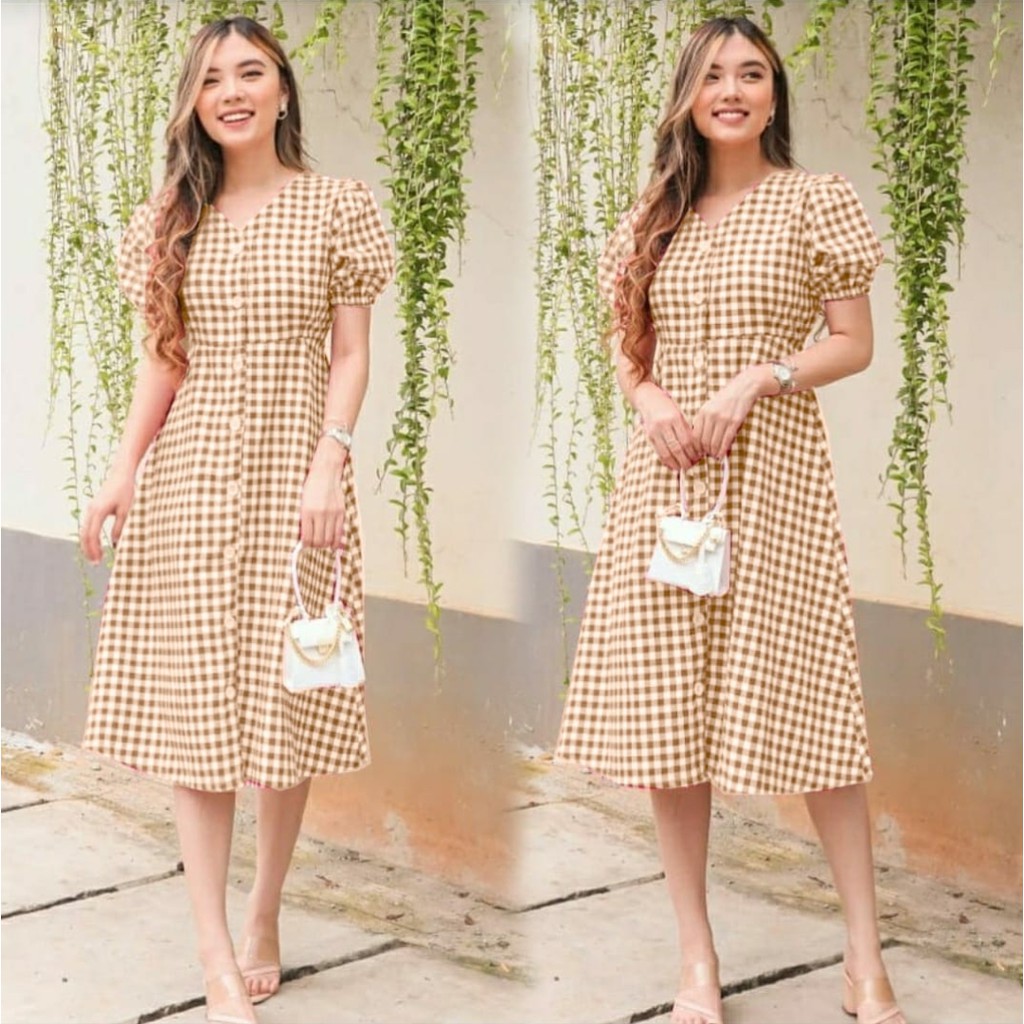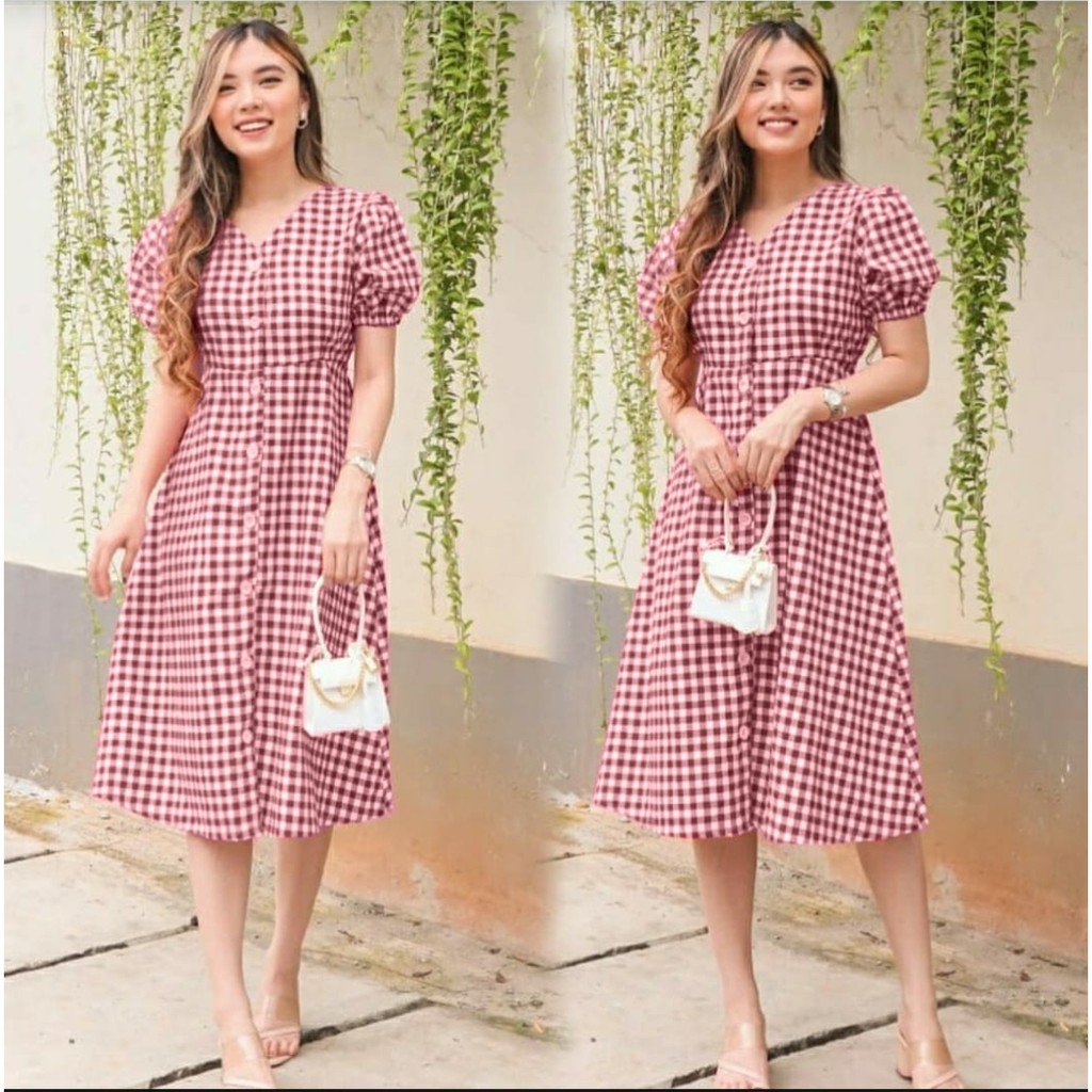 FWG - DRESS TATA / DRESS KOTAK / DRESS KOREAN STYLE / BAJU ATASAN WANITA TERBARU / DRESS