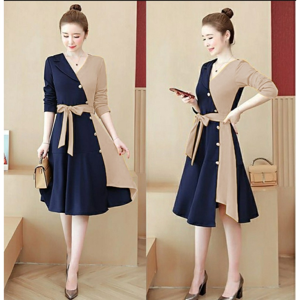 FWG - DRESS RAINSA / DRESS RAINSA BATIK / DRESS KOREA STYLE / BAJU DRESS MOTIF / BAJU WANITA / DRESS