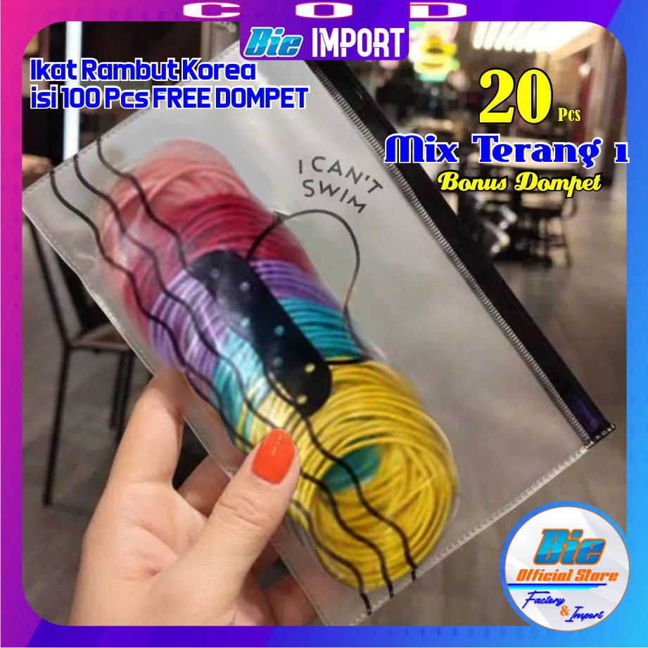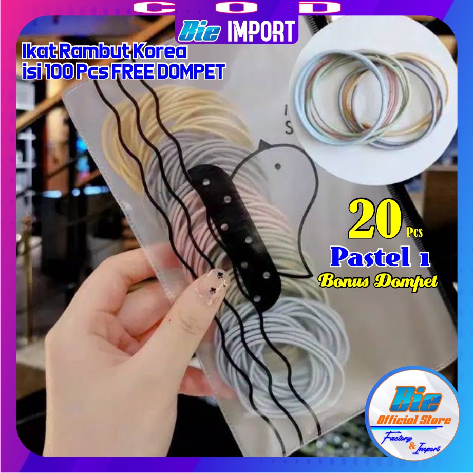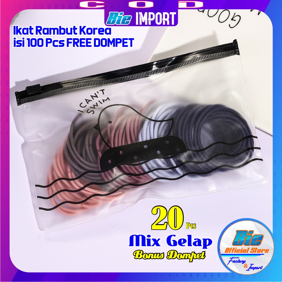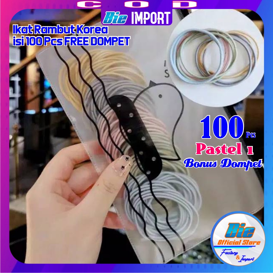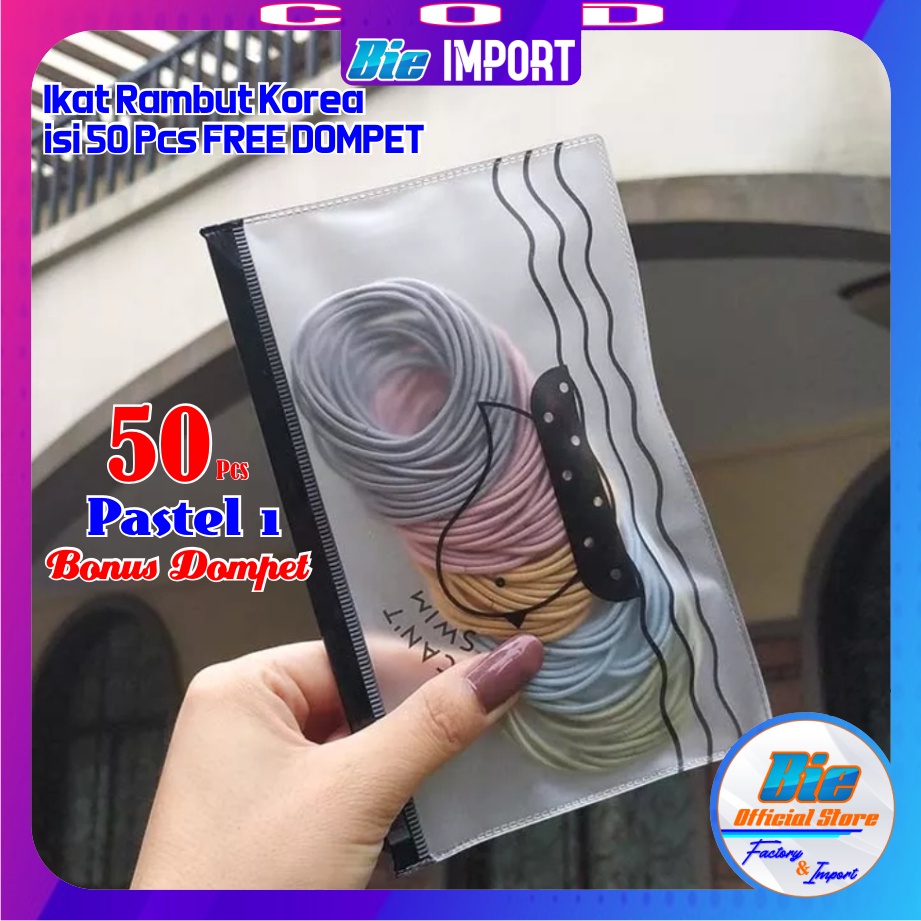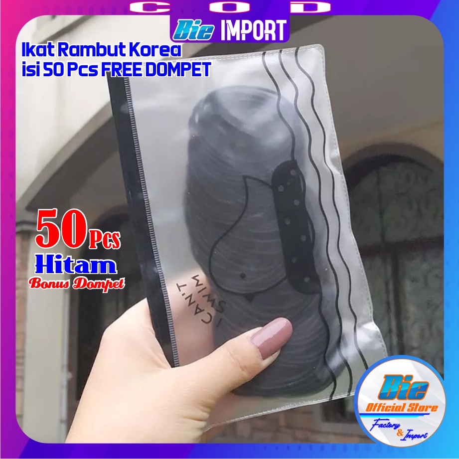 Ikat Rambut Korea isi 50/100 pcs Full Hitam & Warna Free Dompet Pouch / Karet Korea Hitam