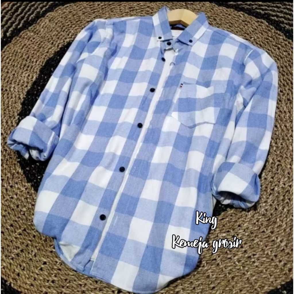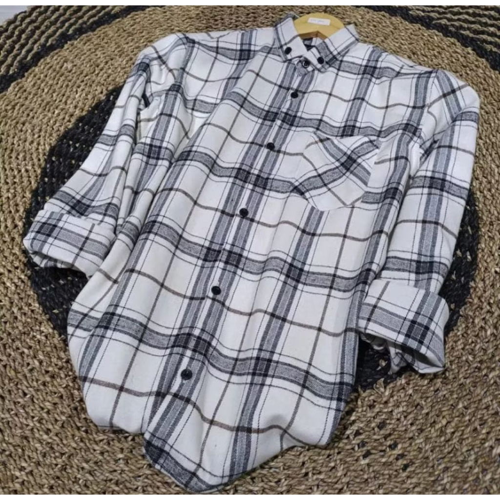 baju flanel cowok lengan panjang terlaris size M L XL
