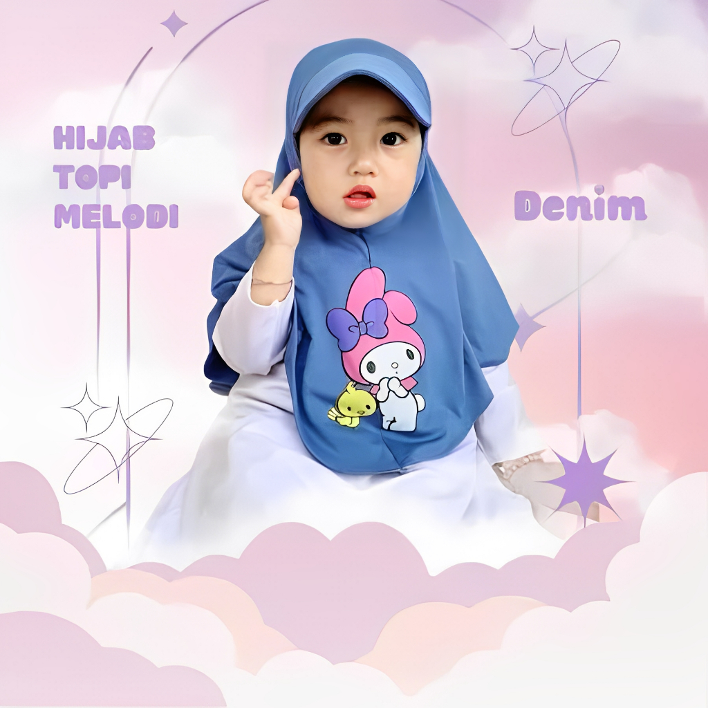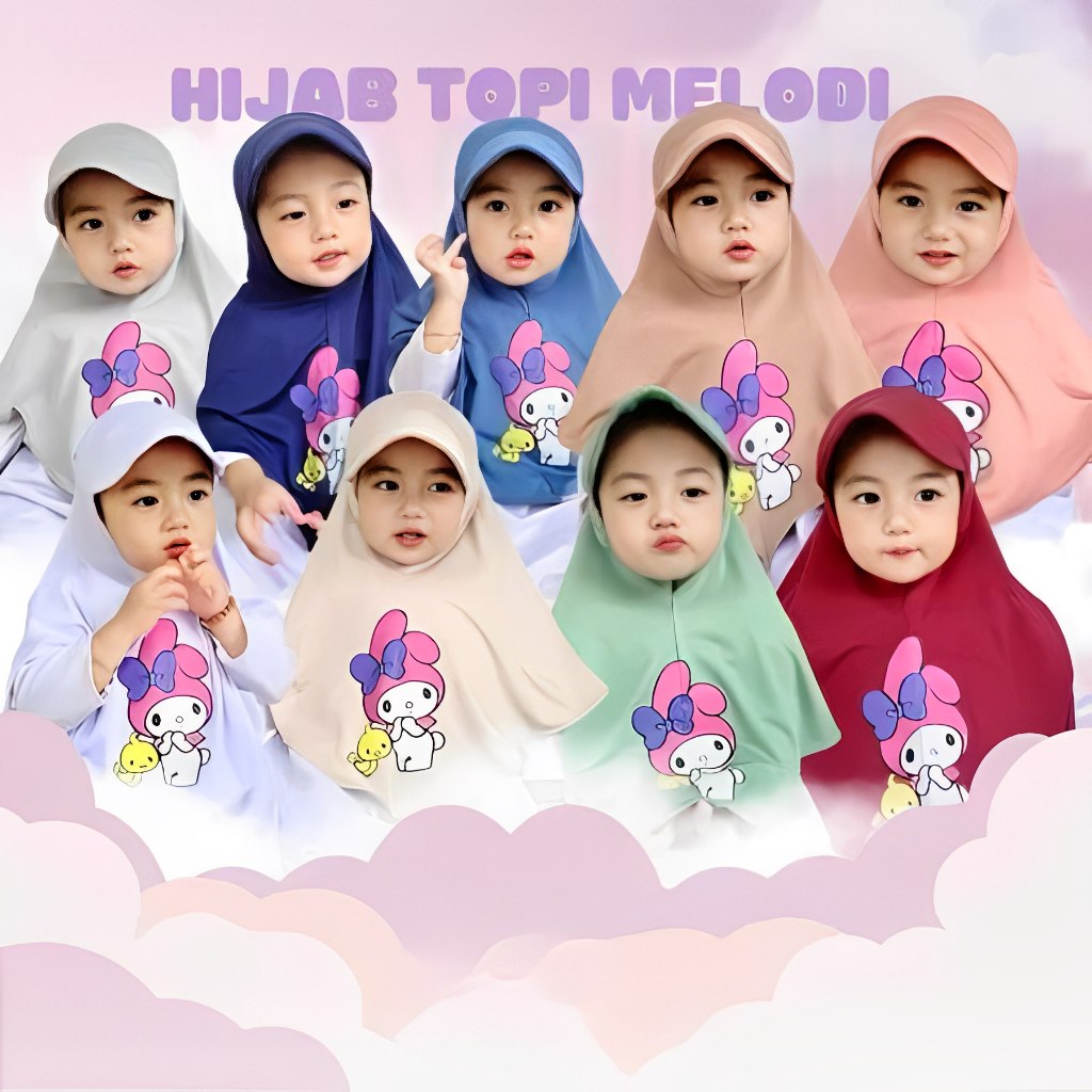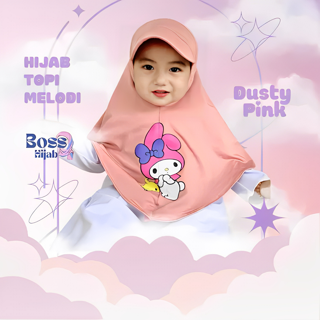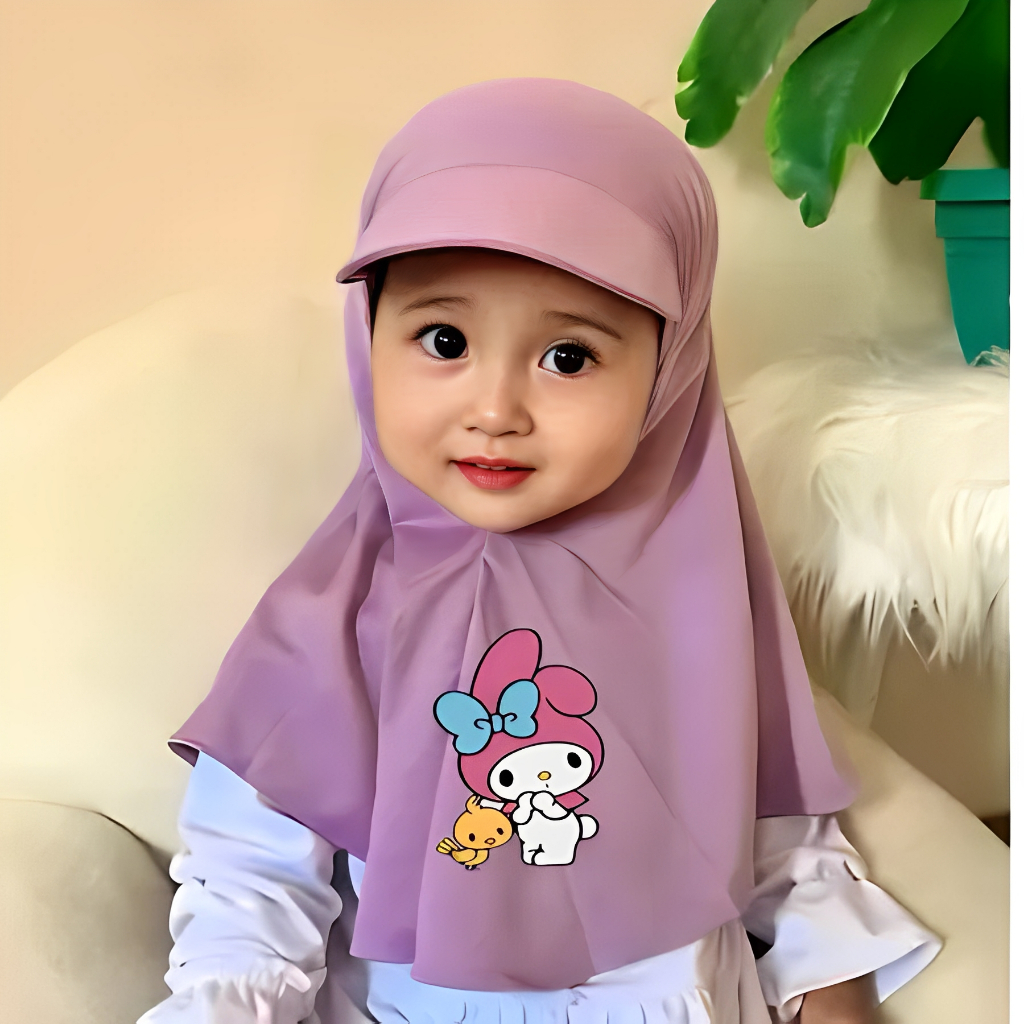 HIJAB TOPI ANAK KARAKTER MELODY 1 2 3 4 TAHUN, hijab topi sport anak lucu